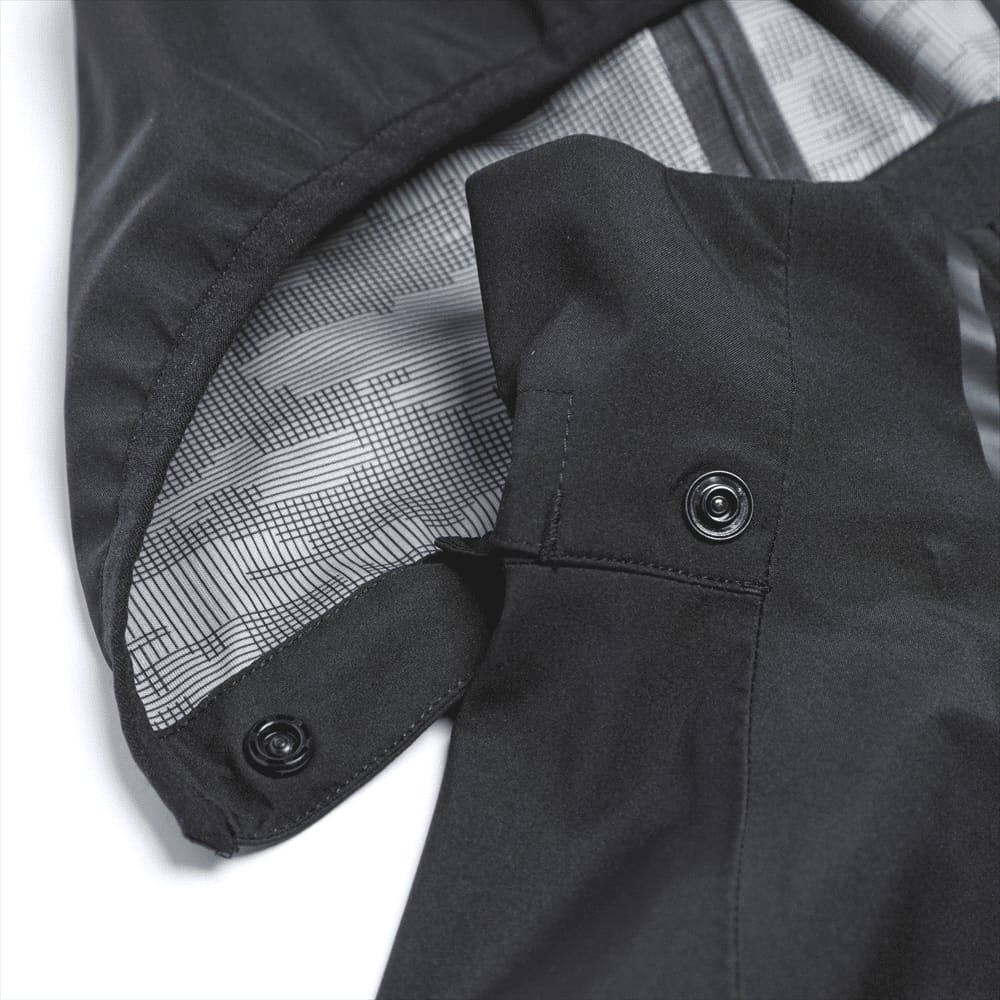 | Material | OUTER SHELL: 100% Polyester mechanical stretch woven bonded to 100% Polyester graphic pattern knit with waterproof (8000mm), breathable (500g/m²) membrane and water repellent finish, 215 g/m² (6.3 oz/yd²). LINING: 100% Polyester brushed tricot knit. |