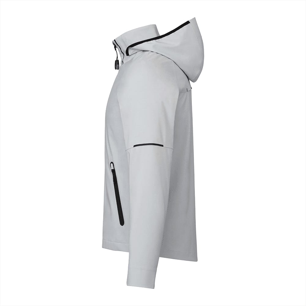 | Features | Centre front exposed contrast reverse coil zipper, interior laminated storm flap with chin guard, lower welded contrast reverse coil zipper pockets, interior pocket with hook and loop closure, interior media pocket, detachable snap off hood with contrast binding on hood opening, laminated contoured cuffs with contrast binding, elastic drawcord at hem with interior cordlocks, dropped back hem, lower pocket hem cinch access, easy grip zipper pulls, heat transfer main label for tagless comfort. Contrast heat transfer graphic detail, welded detail, welded graphic detail, brushed inner collar detail. Interior media exit port with cord guide. Plastic eyelets, key hook. Critical seam sealed, articulated elbows, ergonomic sleeves, back vent, interior system snap tabs for liner add in. |