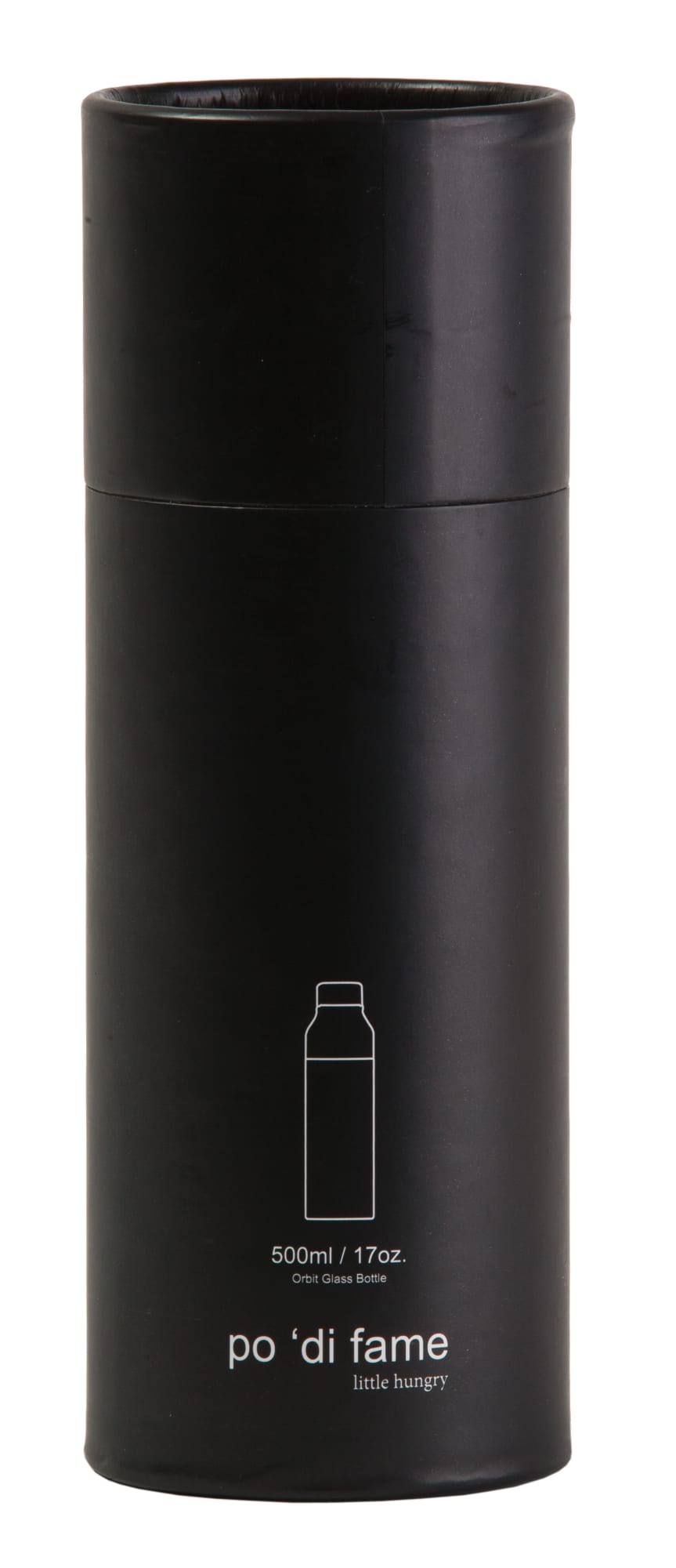 High borosilicate glass bottle|Bespoke twist on leak-proof bamboo lid|Easy grip protective coloured silicone sleeve|BPA Free|Supplied: in a black po ‘di fame presentation tube (24.5cm x 8.5cm Dia.)|Capacity: 500ml
