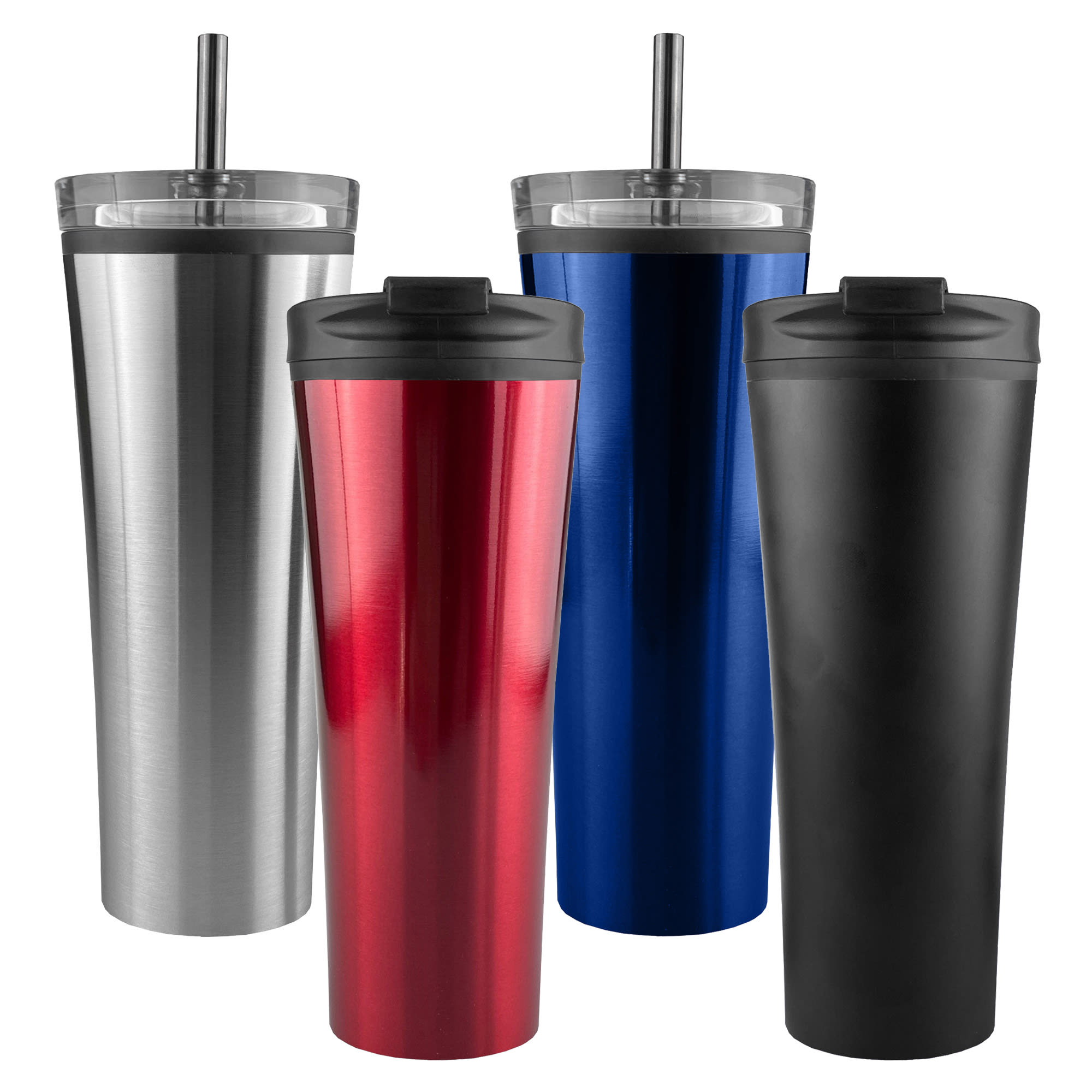 High quality 350ml double wall stainless steel mug with plastic inner wall modern elegant design and has a secure screw on plastic lid with flip closure. Matt finishing in black and sand polished in silver shiny high gloss in red and blue absolutely leakproof and BPA free handwashing is recommended.