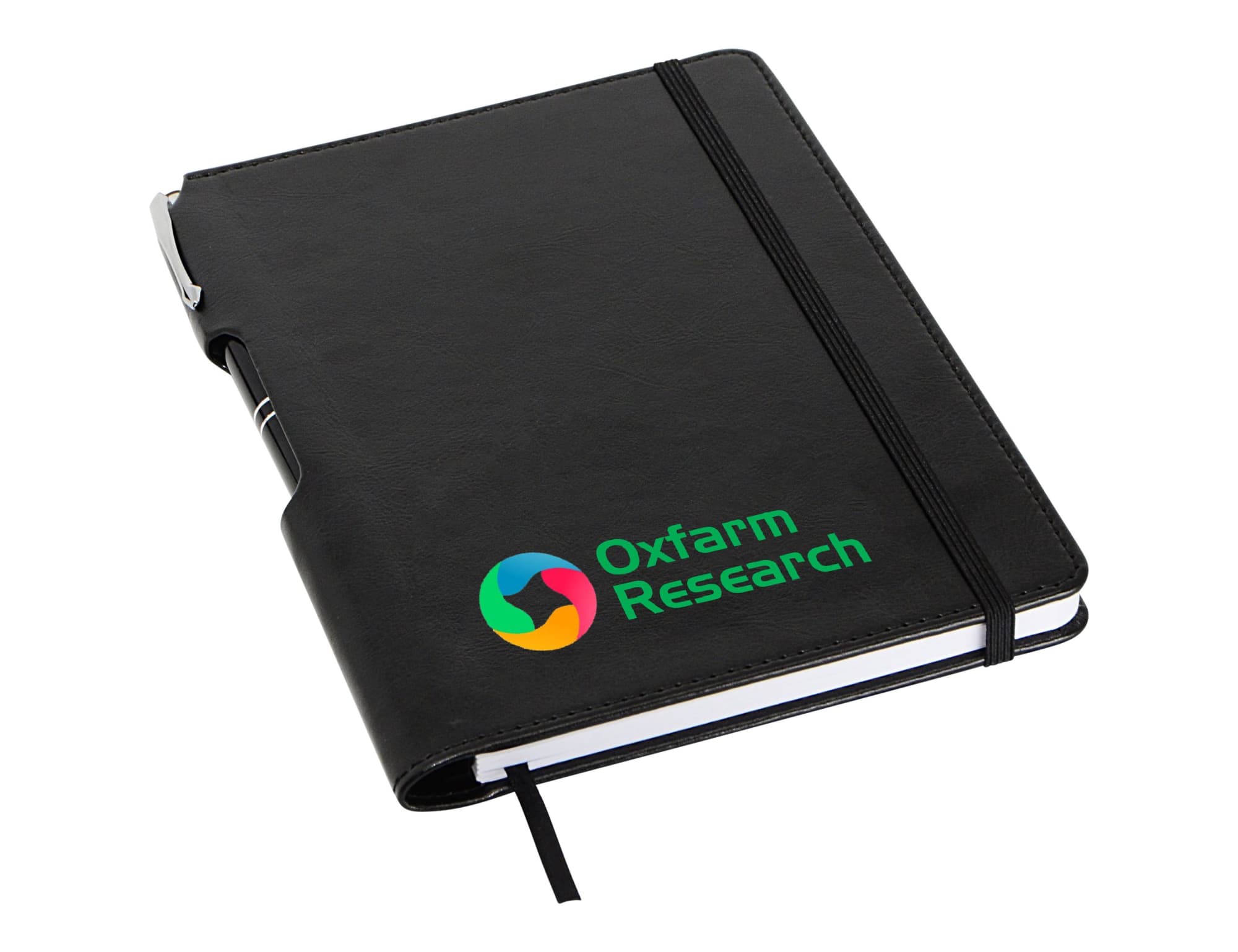 This quality A5 notepad features a leather-feel PU cover, colour co-ordinated elastic closure and designer matching pen. If you’re after a debossed notebook, check these out!