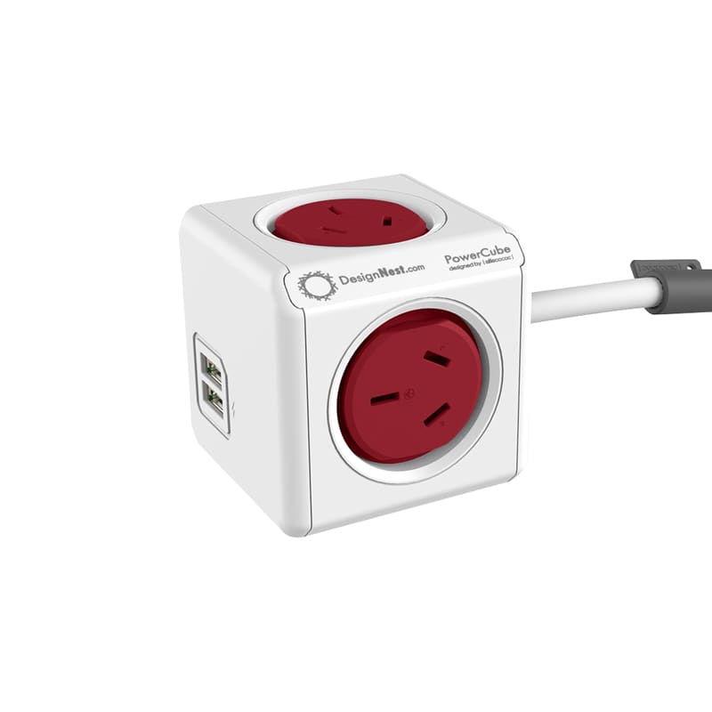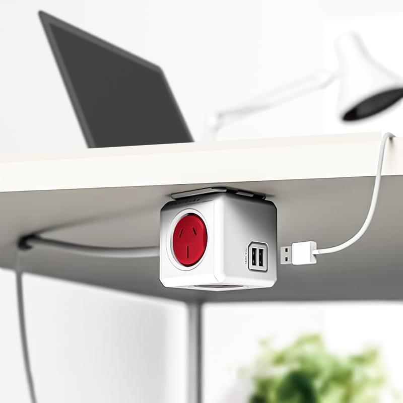 The Power Cube Extended Duo is a stylishly designed power strip with 4 built-in sockets and 2 USB-A connections. This space-saving Power Cube comes with a robust 1.5 metre power cable and twist-to-lock dock, which can be mounted horizontally or vertically above and below any flat surface. If you struggle to charge your phone because the power outlet is across the room or hidden behind your desk or bed, the RCM-certified Power Cube is the obvious choice. Perfectly sized for any wall outlet in your living room, office, classroom, and bedroom. Connect up to five devices simultaneously in all directions with this neat little cube. Turn your mounted Power Cube 360 degrees to plug in at any corner. Includes Built-in Resettable Fuse, Mounting Dock, Removable Tape and CableFix retainer. Materials: ABS