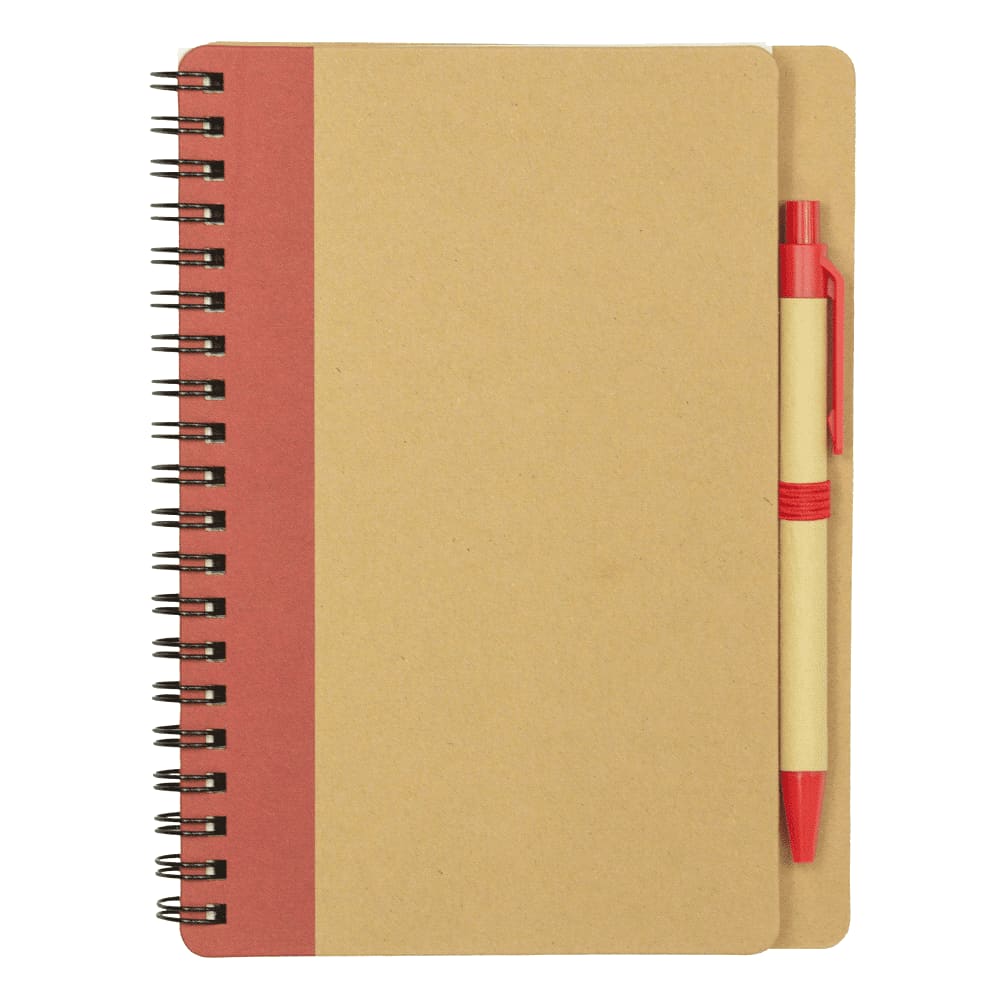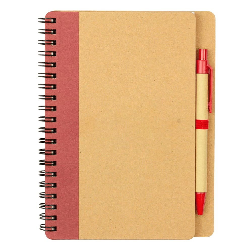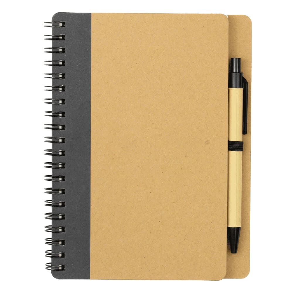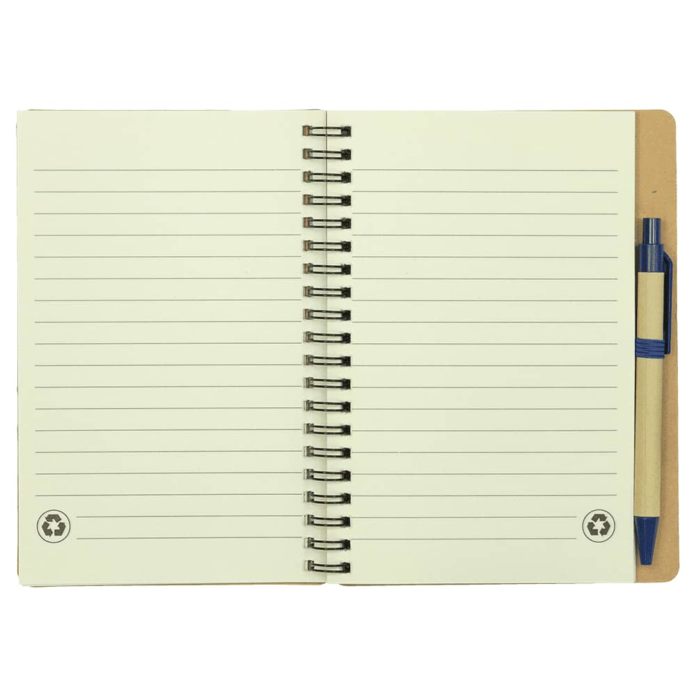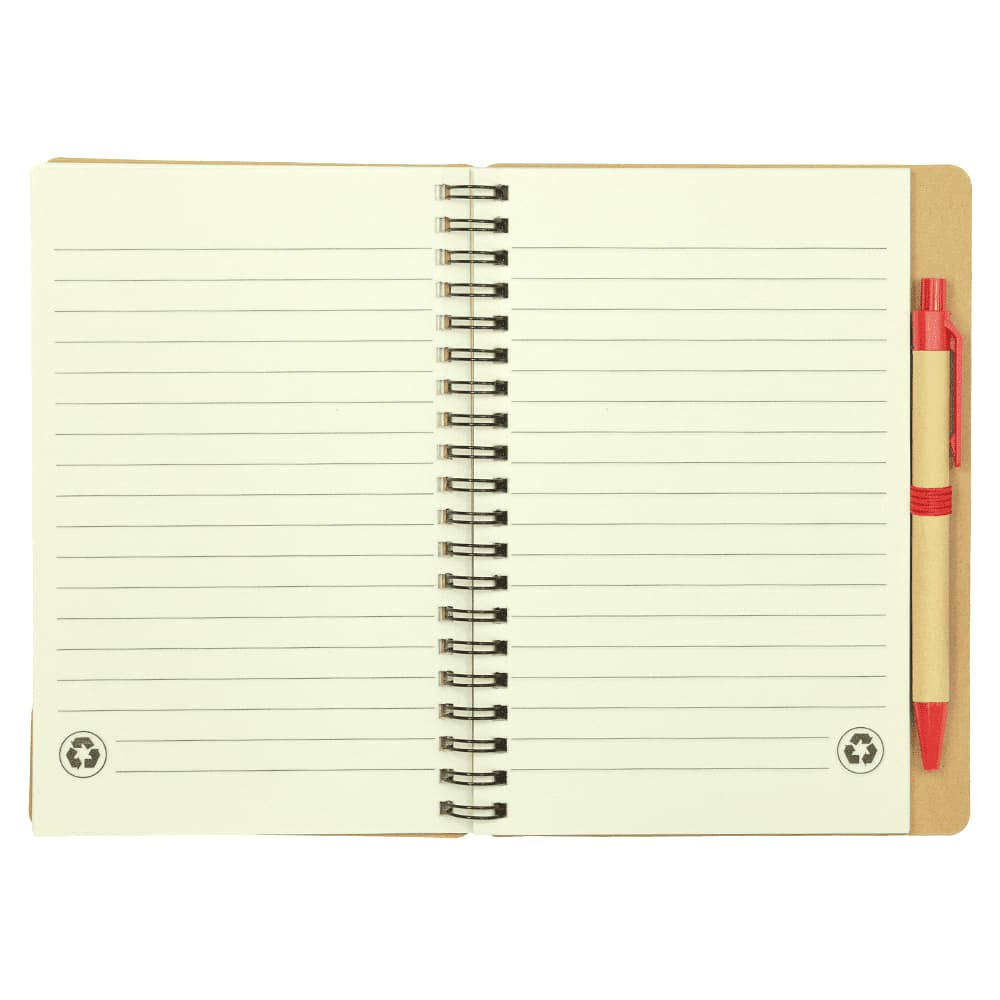Recycled paper cover notebook with 60 sheets of lined recycled A6 reference paper with matching pen.