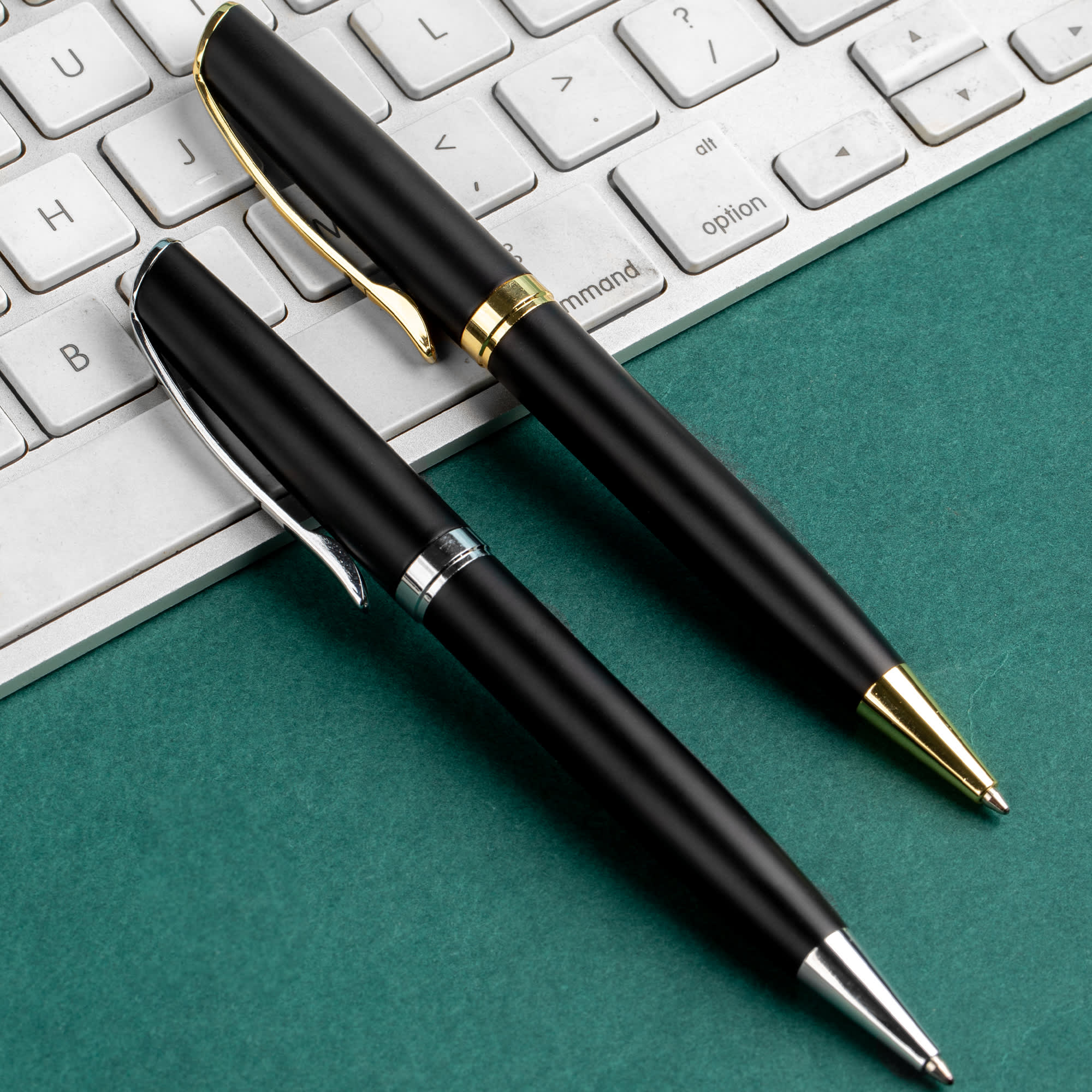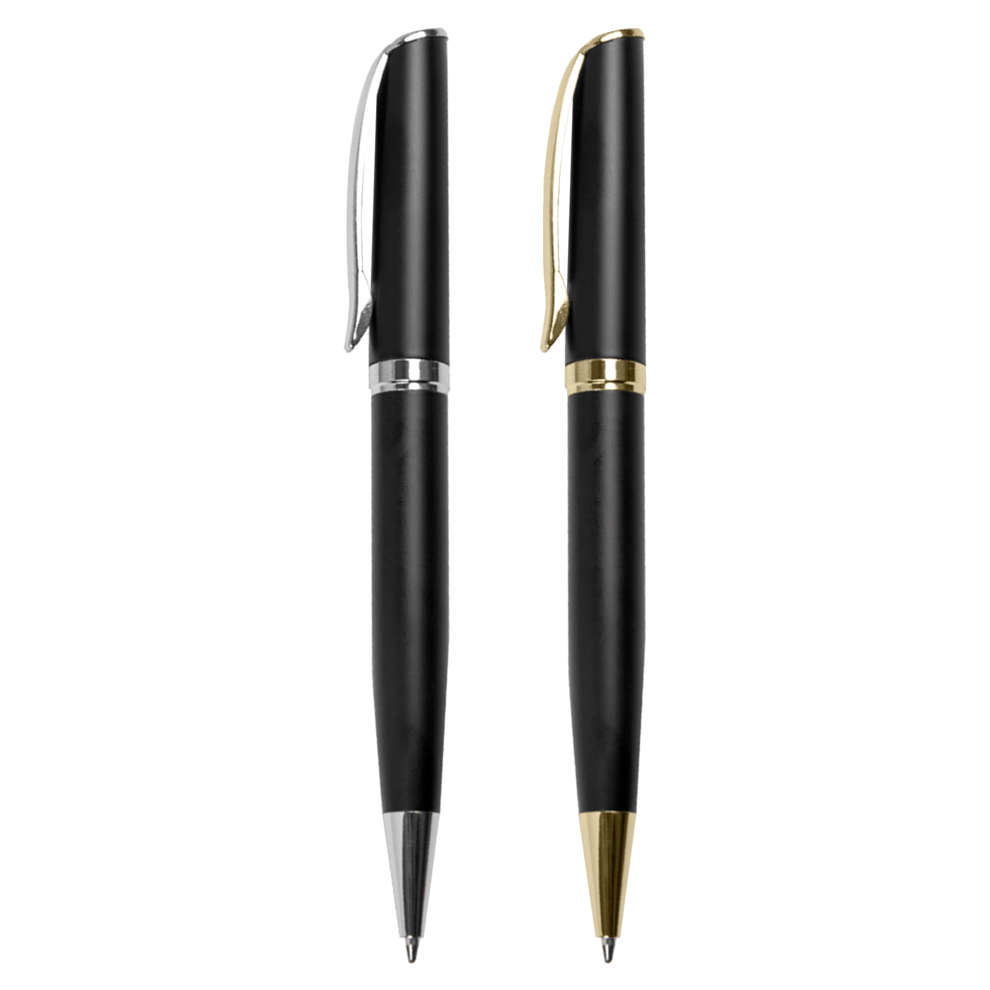 Classic design of heavy brass made metal pen matt black barrel with silver chrome coated engraves to a shiny mirror finishing gold and silver trim. Twist action with Parker-Type German manufactured black ink refill 1800 meters writing distance tungsten carbide ball provides you with quality writing.
