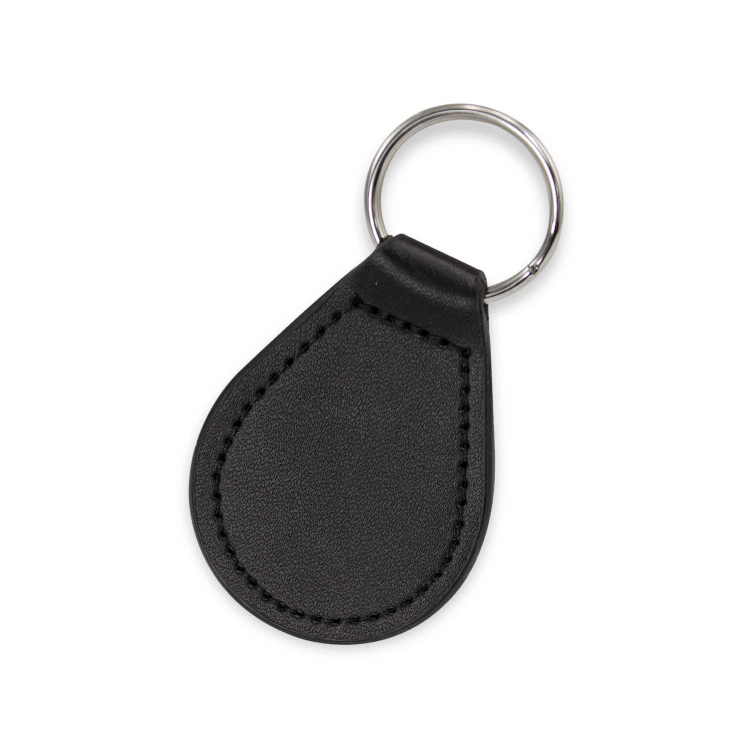 Round genuine leather key ring with smart matching stitching nicely presented in a black gift box.