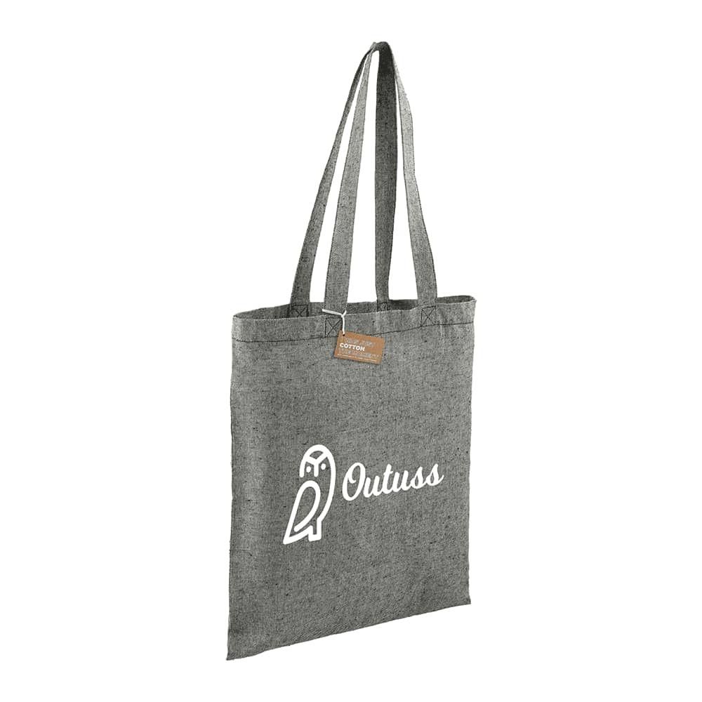 This recycled cotton twill tote is great for any convention and helps promote corporate social responsibility.