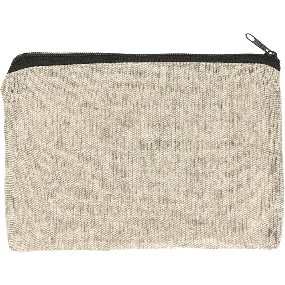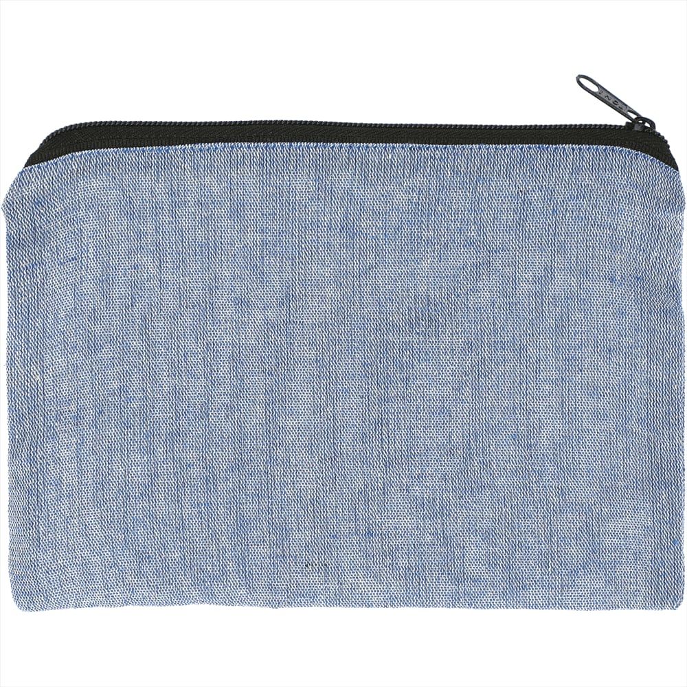 Keep your electronic accessories or toiletries organized in this recycled cotton travel pouch. This pouch features a zippered main compartment and is made with 100% recycled cotton.