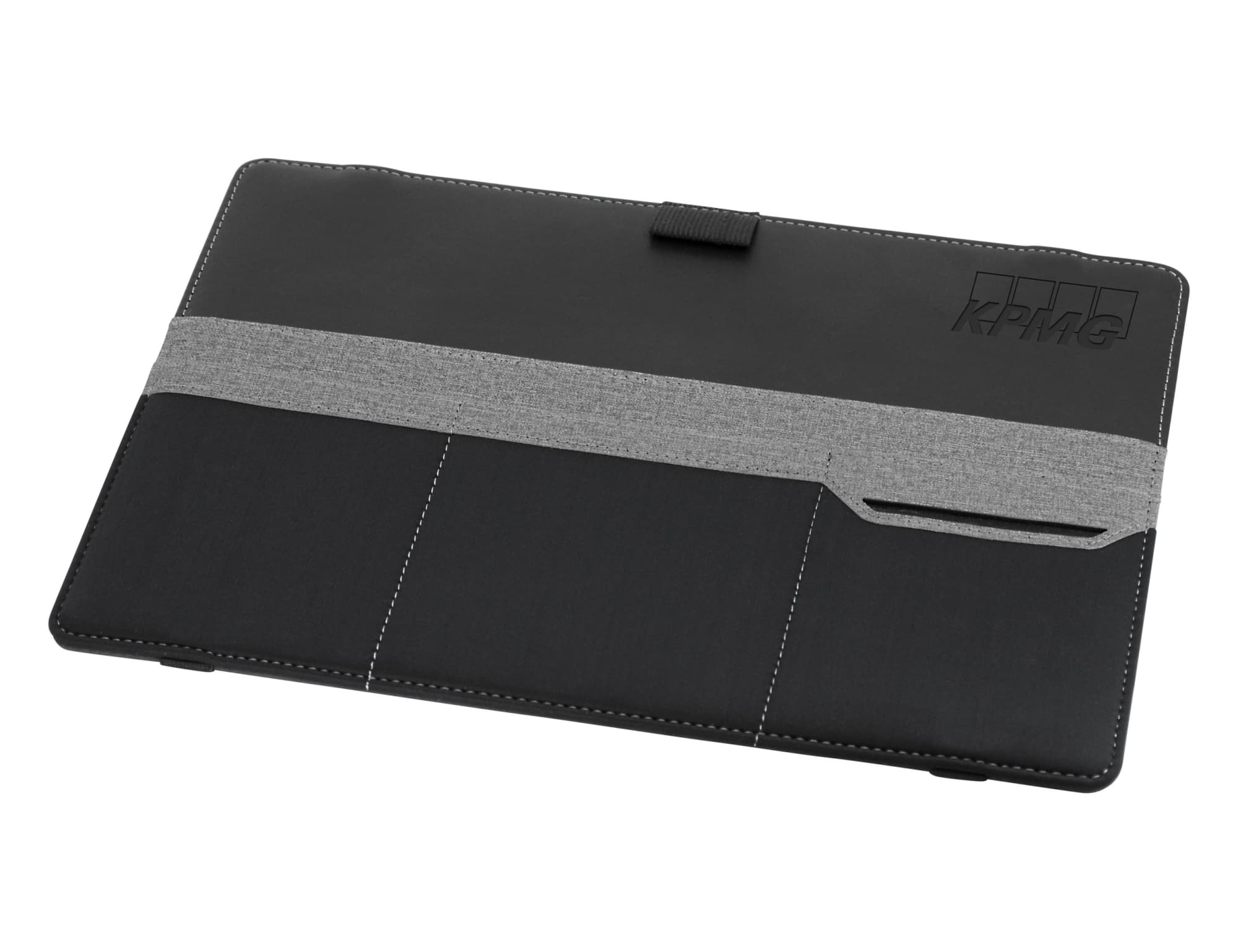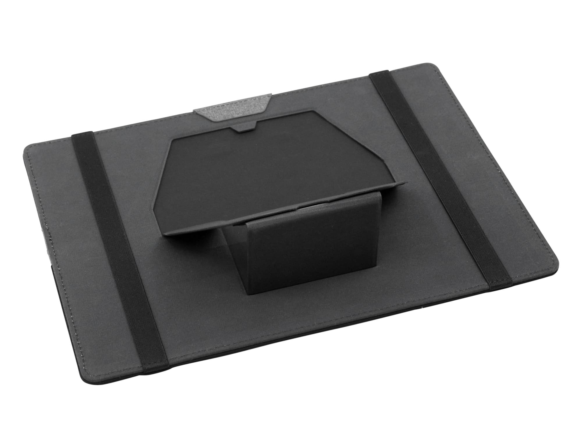 This organiser easily attaches to a laptop and is designed to keep all your stationery and tech products together for easy access. Standing upright, it features a fold-out leg, multiple pockets to hold a phone, cards, chargers, brochures and much more.