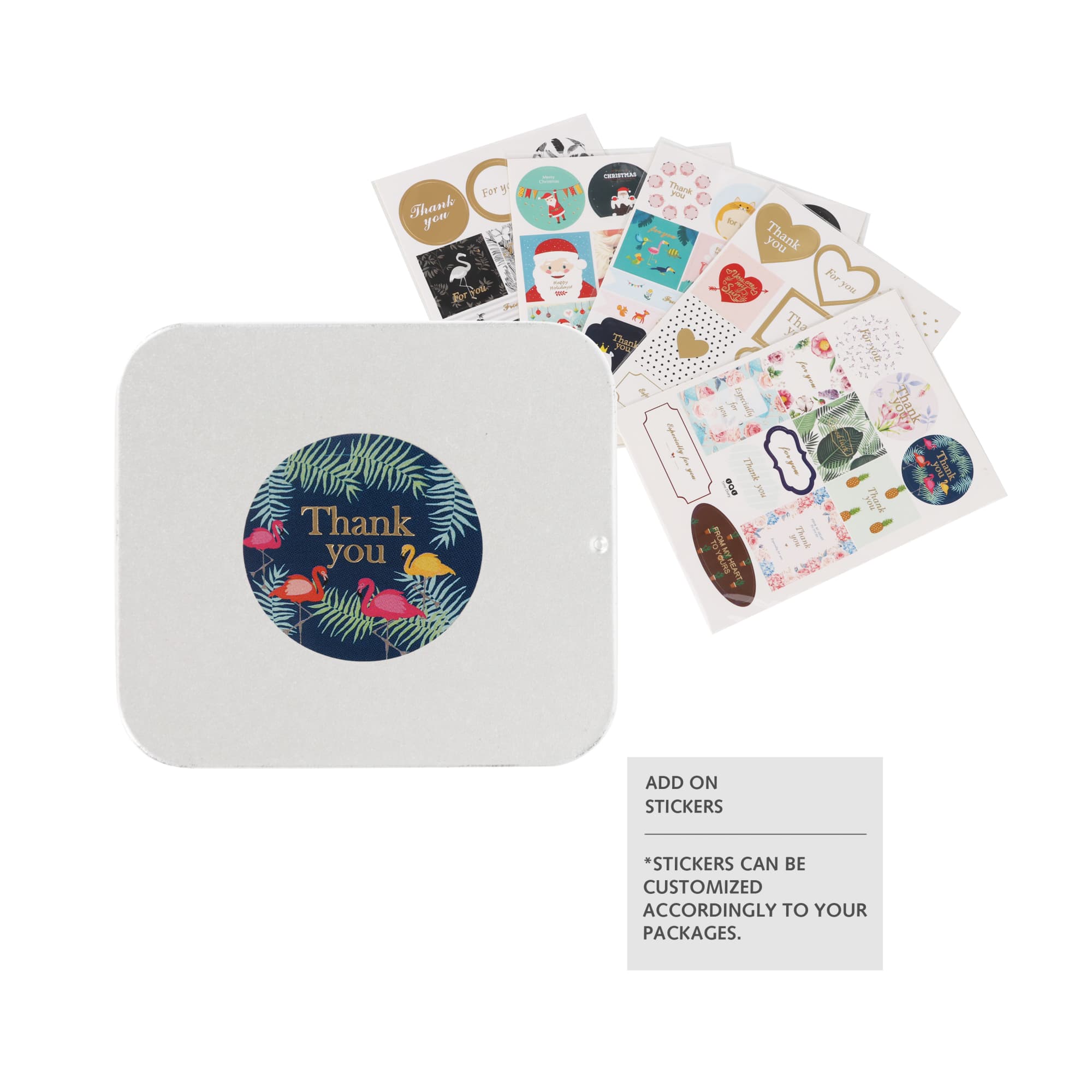Slide Tin Box is too cute for words. It will never bore your clients with wordy promotional items like this. The fun promotional tin case available in silver and one size, you can choose to print or add stickers on it. Premium quality and great capacity allow you to put anything you want in it.