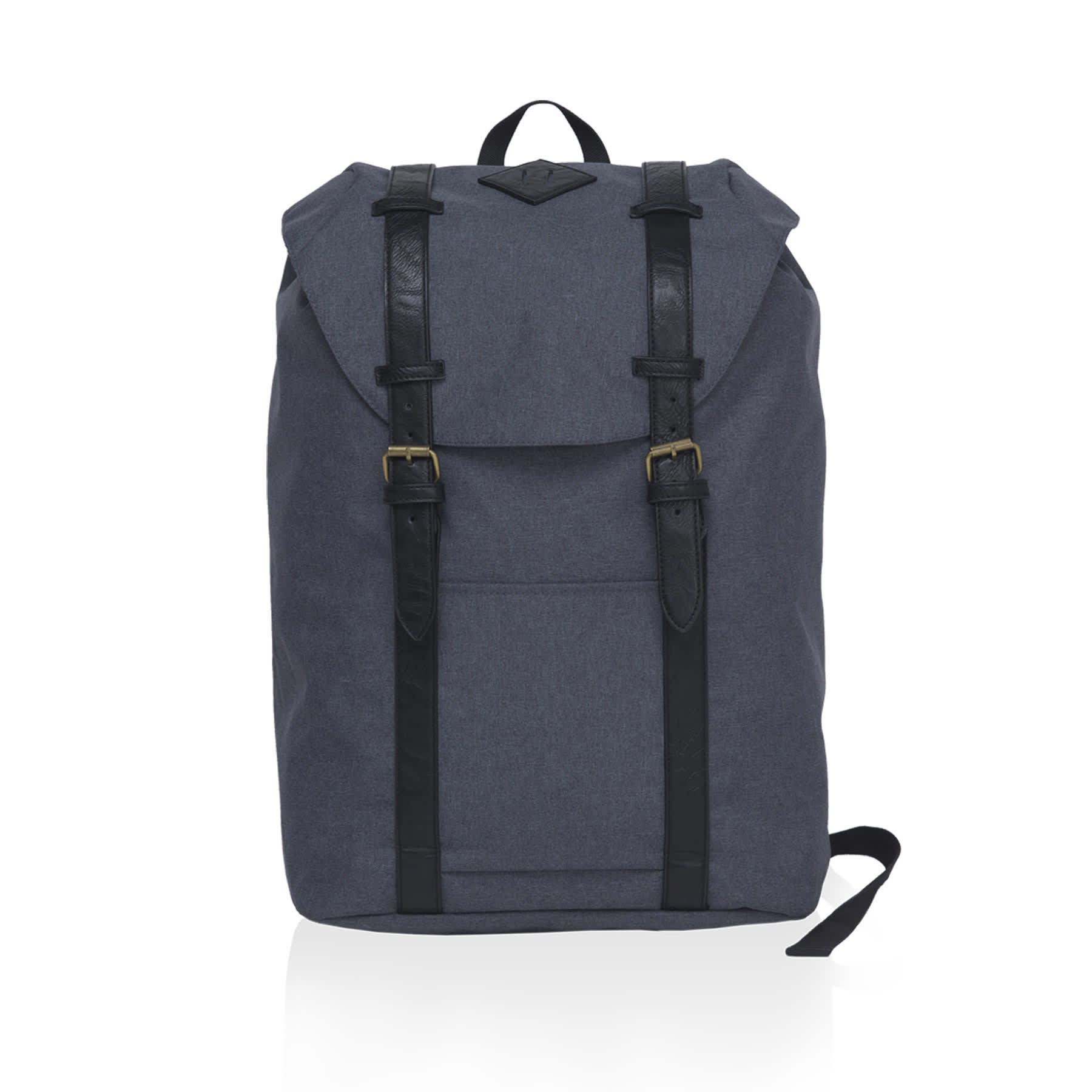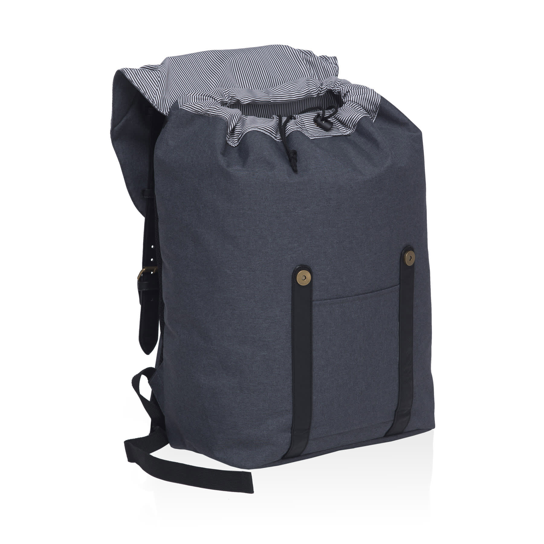 300D Polyester melange fabric|black/white striped polyester lining|Adjustable drawstring closure for access to main compartment|Zippered cell foam padded laptop ompartment fits 15″ laptop|Padded cell foam compartment fits 11” iPad/tablet|Dual leatherette compression straps|On-the-go webbing grab handle|Antique finished brass buckles and magnetic closures|Multiple pocket organiser|Front slip pocket|Adjustable padded contoured shoulder straps|Classic heritage loop label|Rubber feet|smpli™ side pip label.|Capacity: 25 Litres