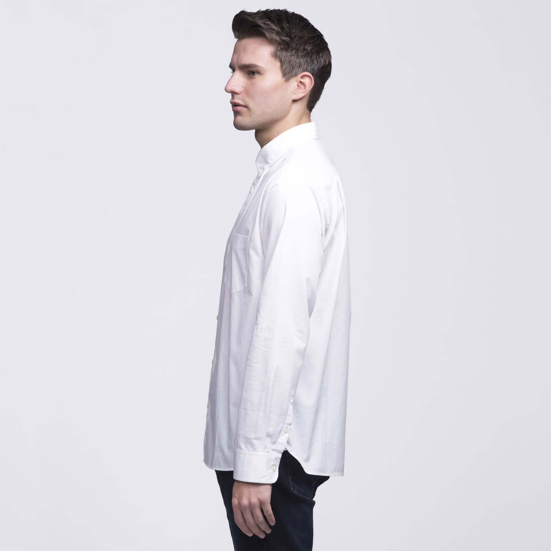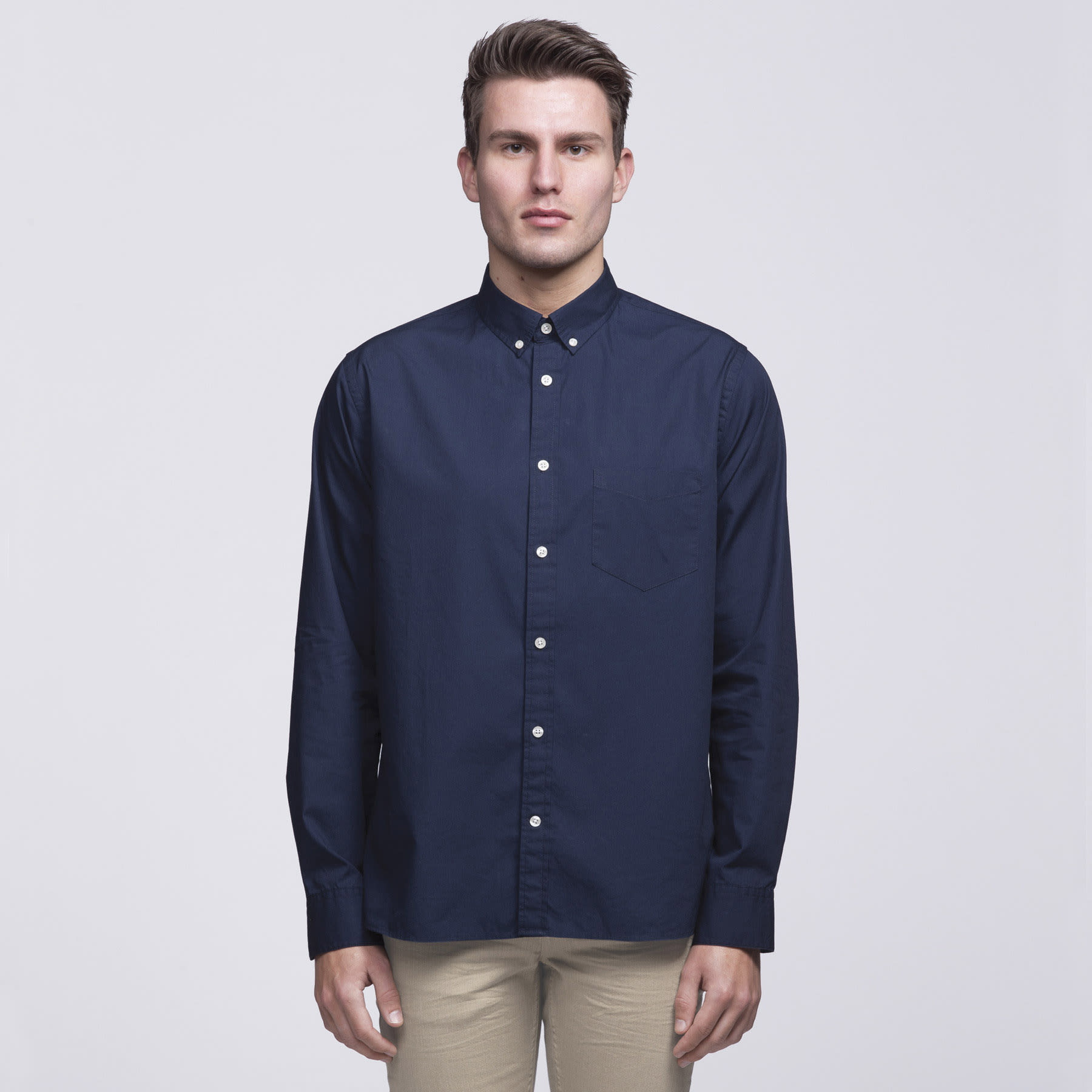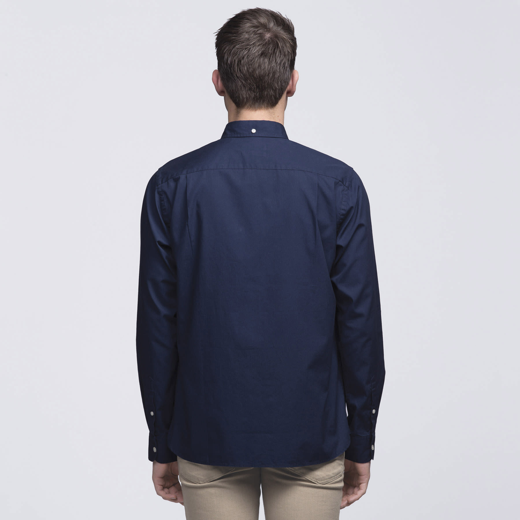 100% Cotton|Garment washed|Tapered fit|Button down fashion collar|Long sleeves with buttoned cuffs|Single chest pocket|Back collar button|smpli™ plaquet label