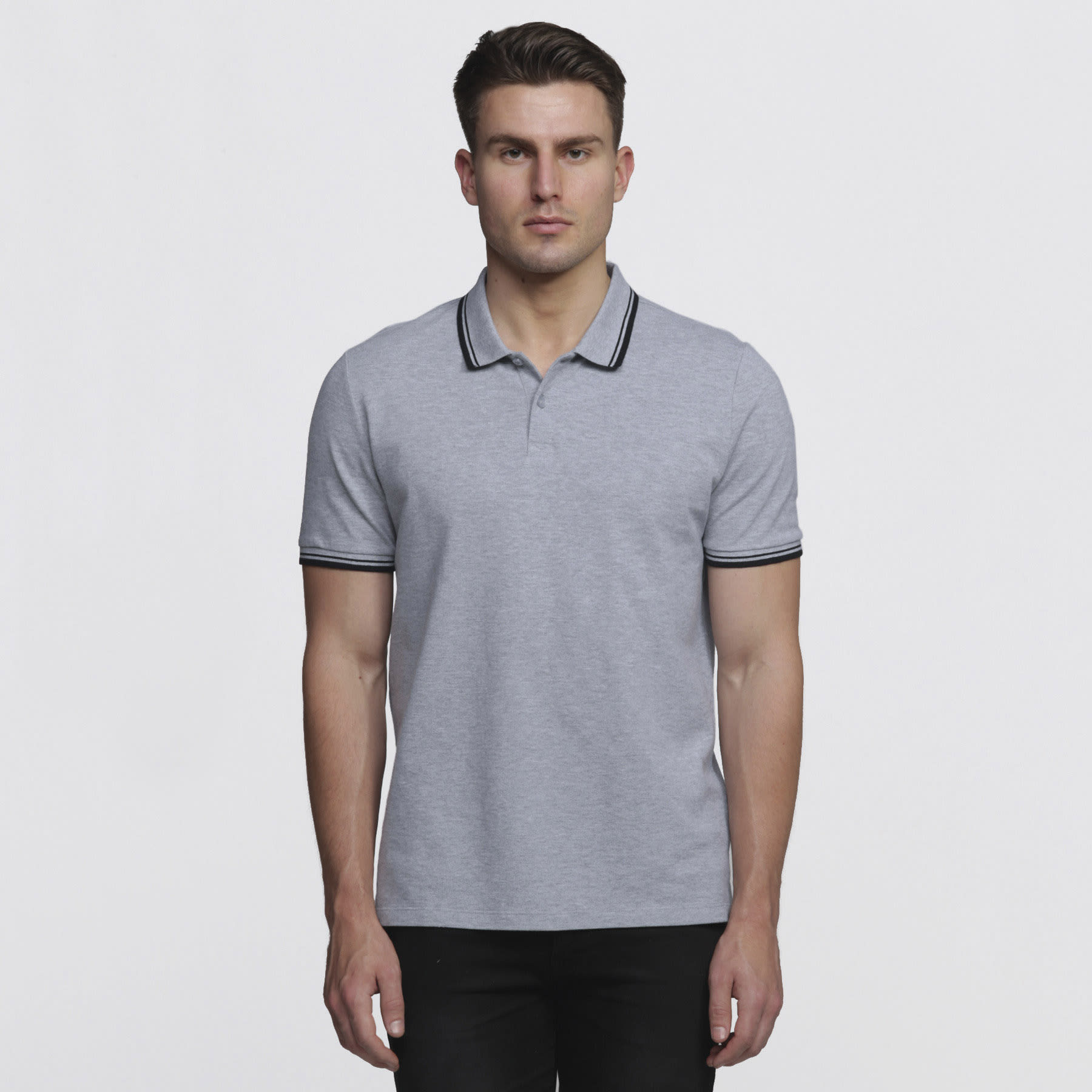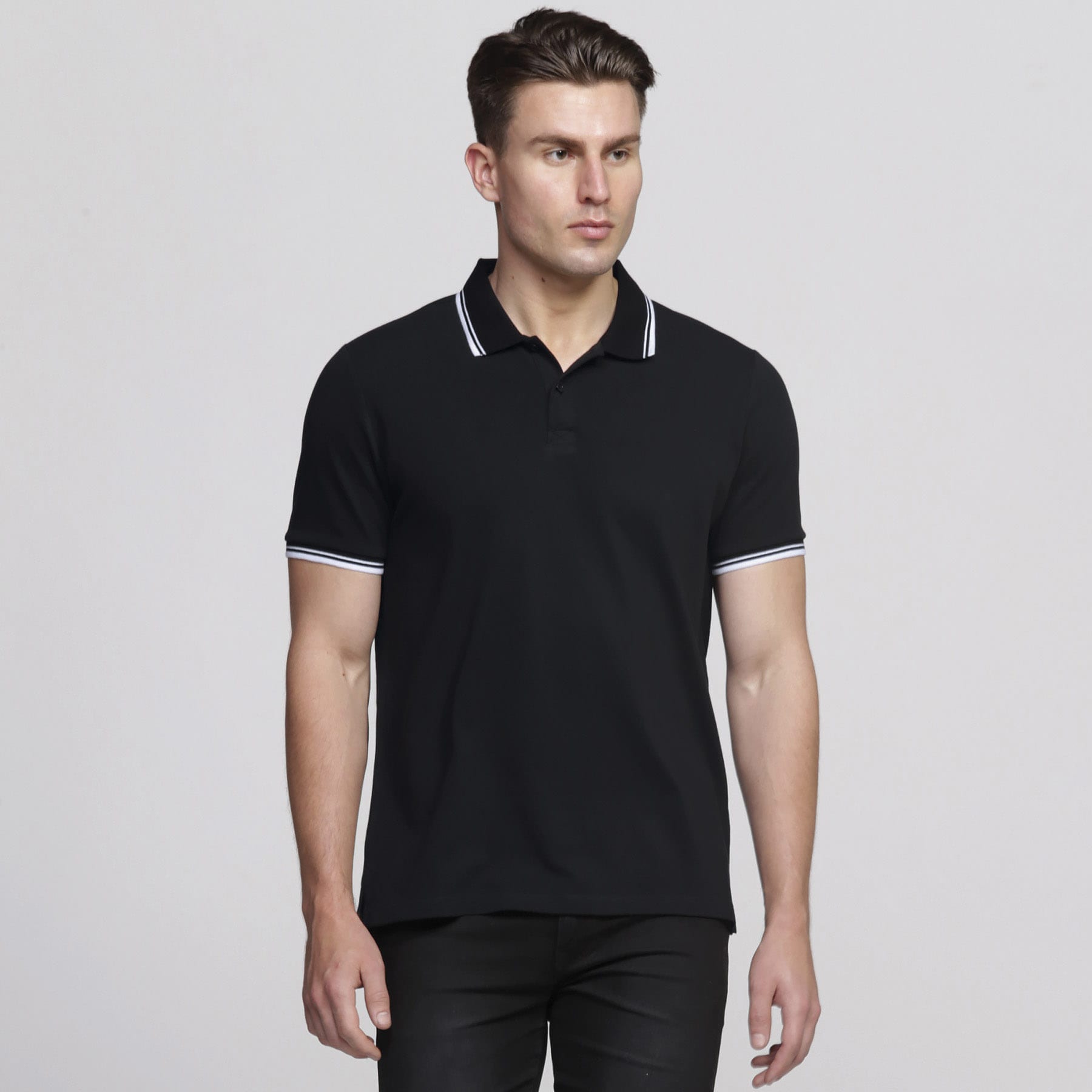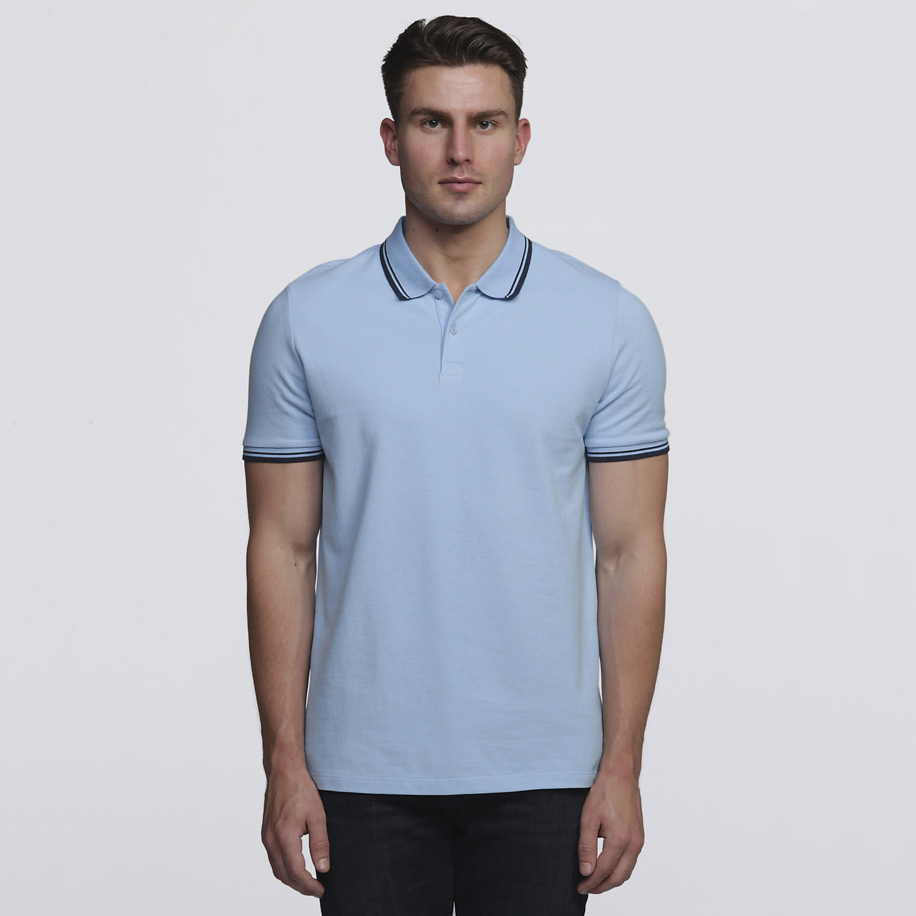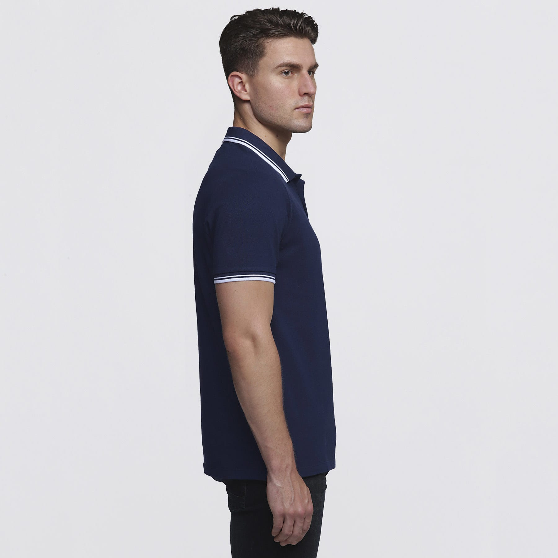 220gsm|100% Cotton Pique|Tapered fit|Iconic contrast stripe twin tipped flat knit collar|Back collar snap button|Two button plaquet with classic box stitch detailing|Breathable textured Pique|Set in sleeve with tipped flat knit cuffs|Side splits at hem|Embroidered smpli logo on centre back yoke