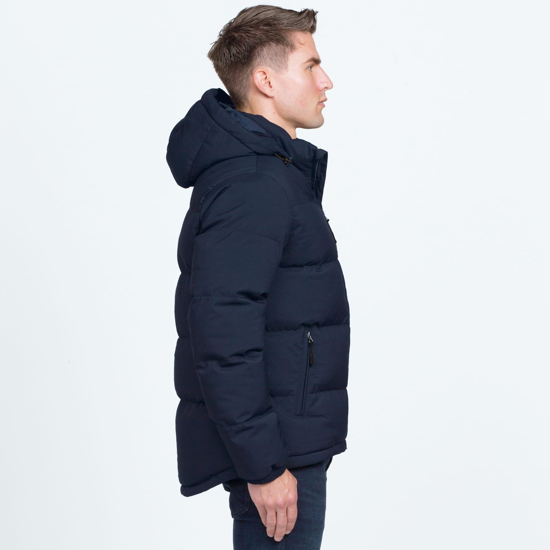 100% Polyester plain microfibre with TPU coating|Classic fit|Fully lined with taffeta|Quilted stitch detailing with poly-fill padding|Water repellent rating 10,000mm|breathable|Padded collar with detachable & adjustable 3 piece padded hood|Full front blind zippered plaquet with internal storm flap|Zippered internal chest pocket with internal audio port|Two blind zippered side pockets|Elastic cuffs|Rubber zip pullers|Adjustable draw cord|on tailored hem|Embroidery access with concealed zipper at hem|smpli™ badge