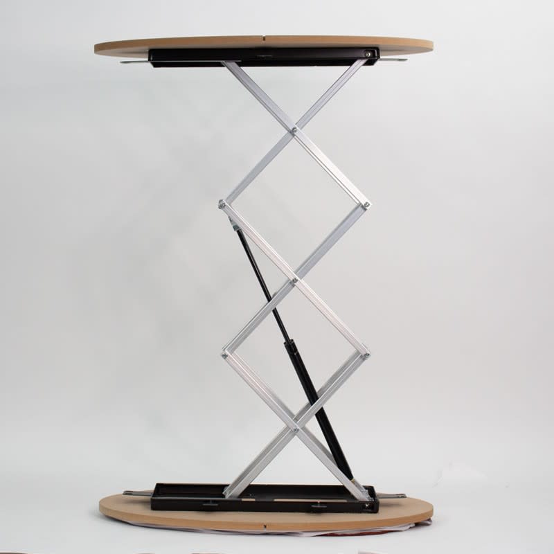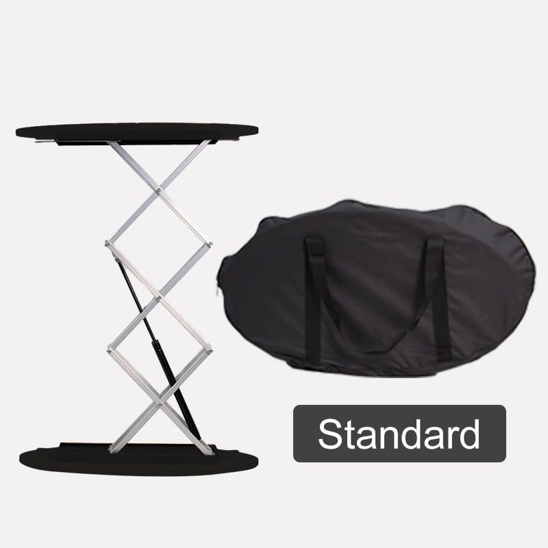 This innovative oval-shaped display counter is an amazing solution for your trade shows, conferences, conventions, and exhibition needs. Just as its name indicates, with the spring mechanism, it can be pulled up or retracted within seconds! With a flat top and fully customizable graphic, it can be used as a podium, a table, or a product display shelf.