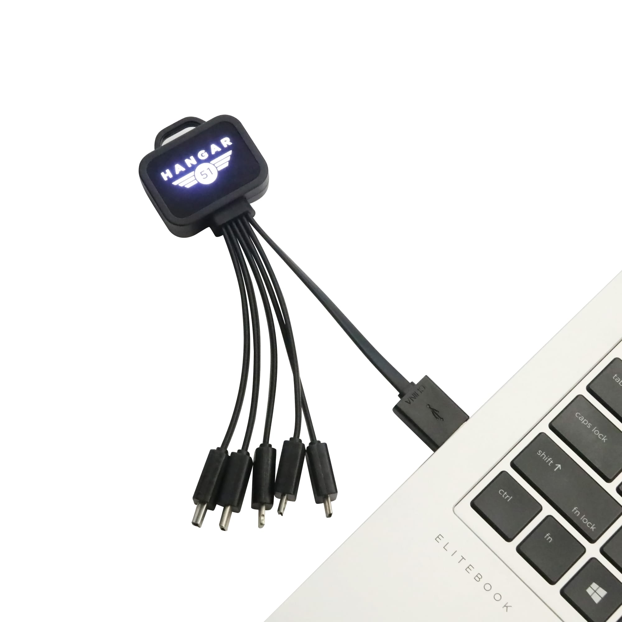 This square shaped light up charge cable comes with illuminating LED top section when connected to power, it come with multiple cables so you can fit with all of current devices on the market. This square shaped light up charge cable allows you to bring your logo to life. You can engraved the centre with your logo and light up in white colours. This item would surely become the perfect giveaway to promote your hi-tech store.
