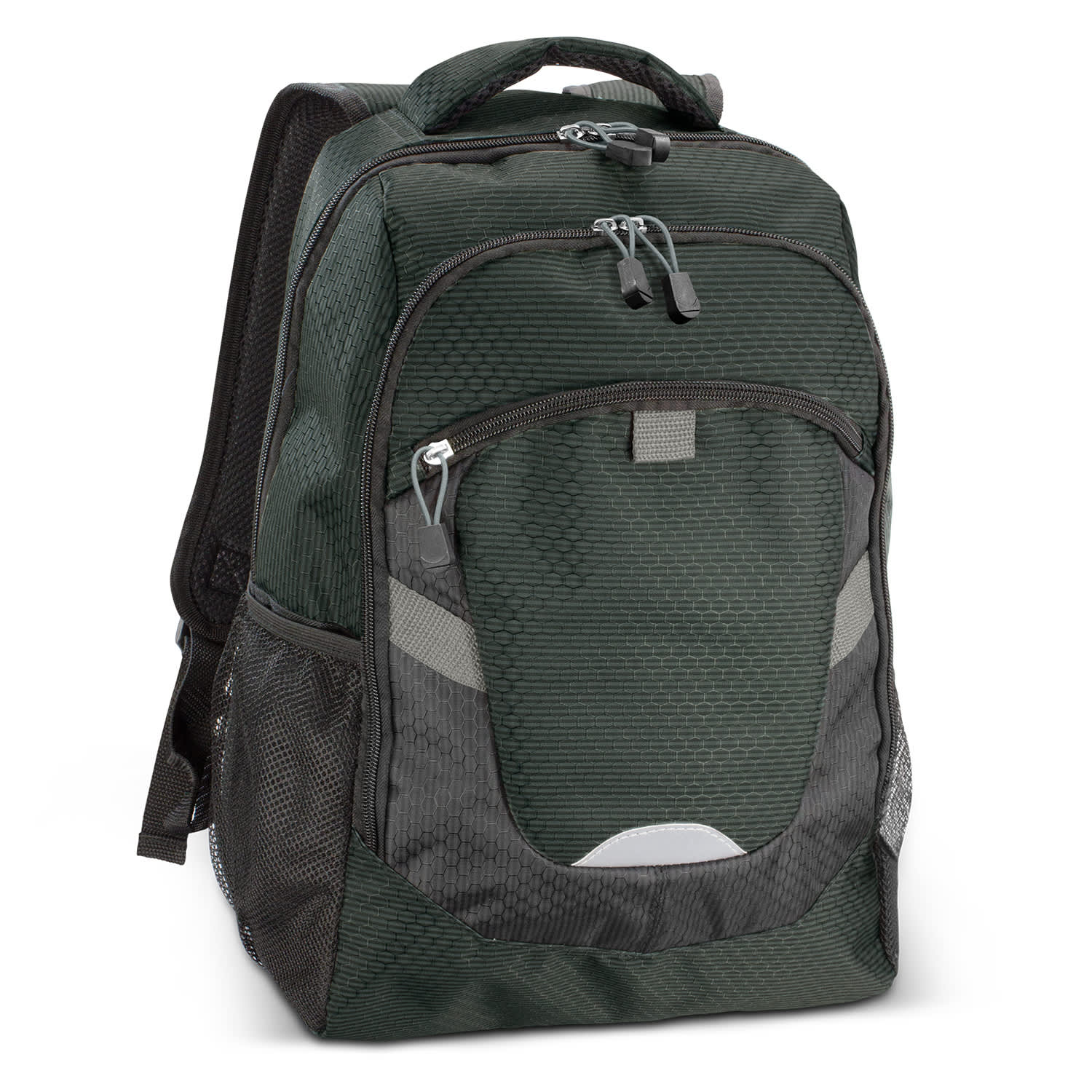 Attention-grabbing backpack with outstanding design and superb functionality. It is manufactured from a stunning two-tone combination of patterned 300D polyester with a 600D polyester back panel and 210D lining. Summit has a large zippered main compartment with a padded laptop sleeve and two smaller external compartments with zippers. It has a padded back and adjustable shoulder straps with breathable padding for extra comfort. Other features include two mesh side pockets, a padded carry handle, a hi-vis reflector on the front, smart elastic zipper pulls and trendy coloured accents.