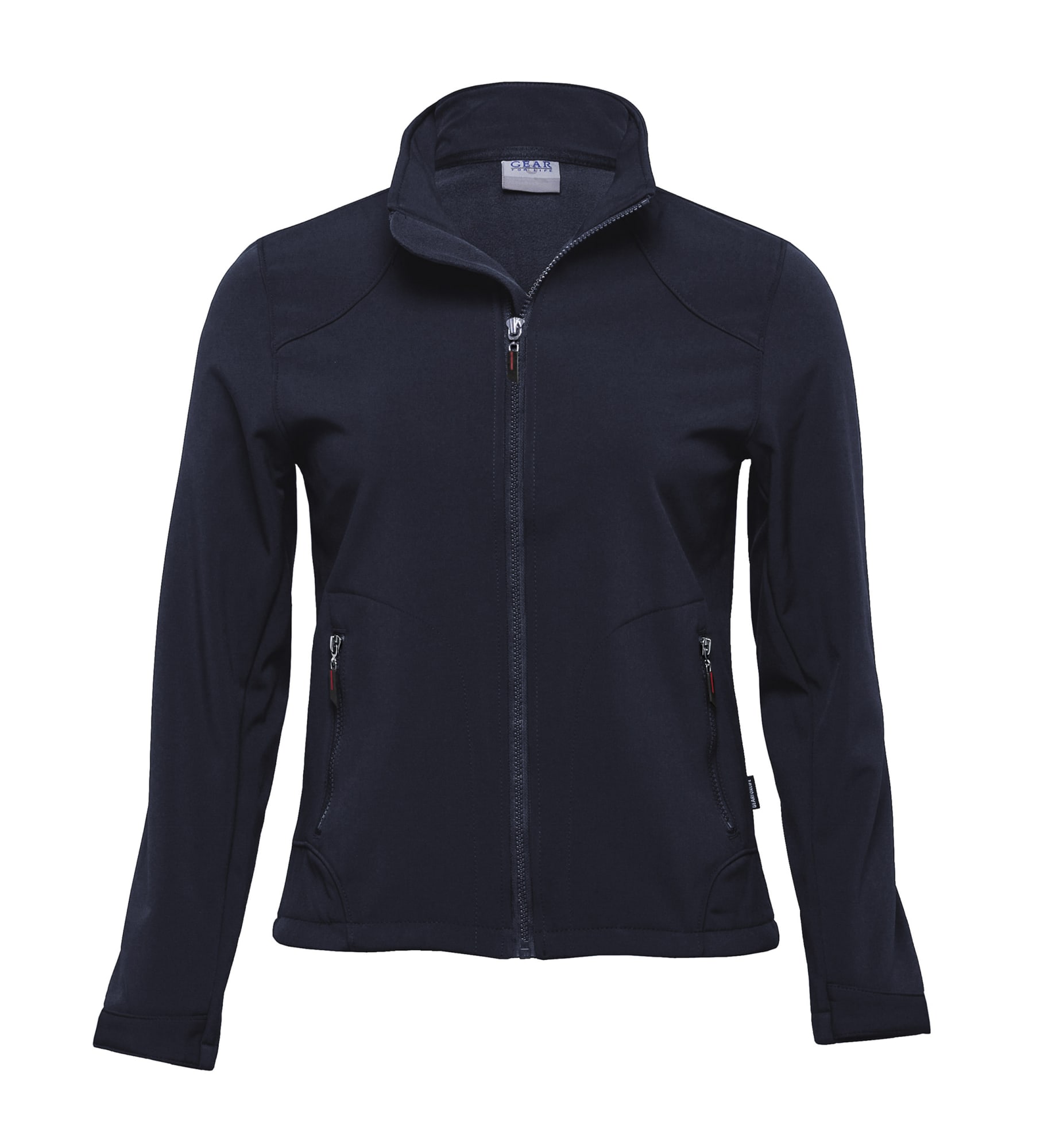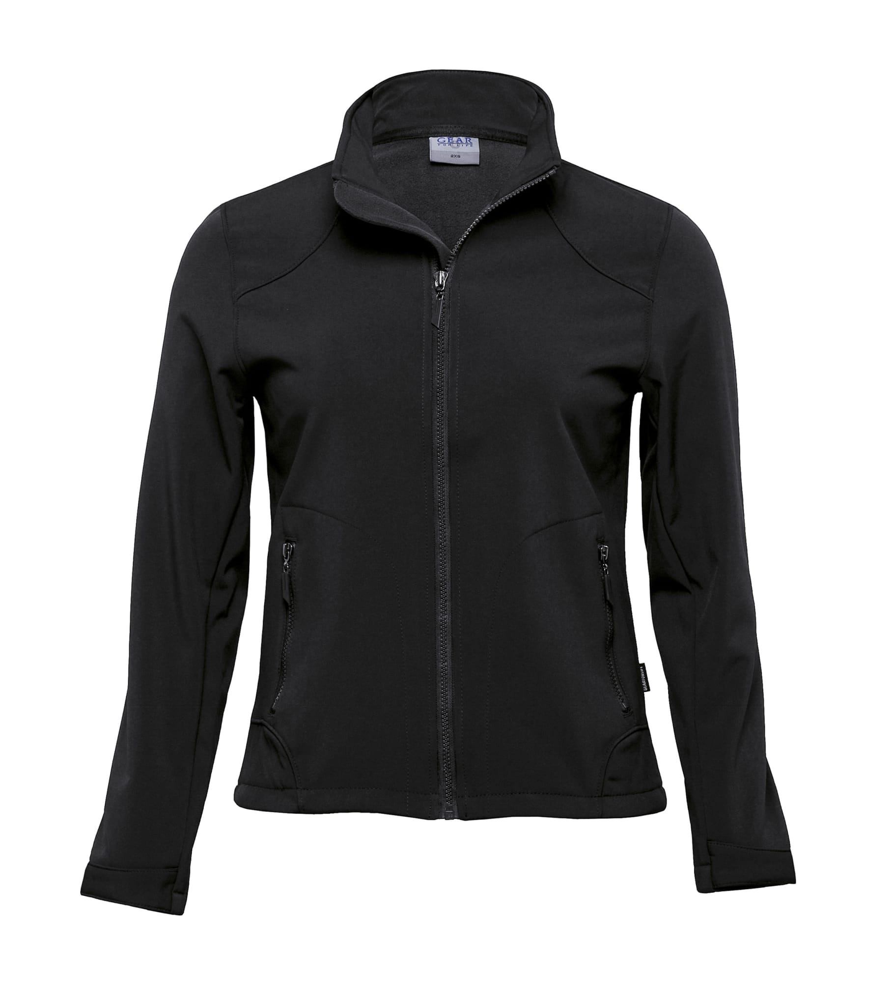 5% polyester 5% elastane softshell bonded with anti-pill microfleece|Wind resistant|breathable|showerproof|water repellant rating 5000mm|Tapered fit|Two way stretch for comfort|High-zip plaquet with rubber puller and internal storm flap|Adjustable Velcro cuffs|Two zippered side pockets|GEAR FOR LIFE side pip|Sizes XXS – XS slightly tapered fit for women