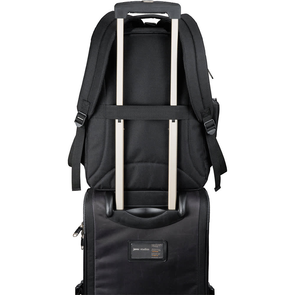 | Features | Front zippered pocket with deluxe organisation. Quick-access corner pocket and zippered accessory pocket. Front bungee cord. Rear trolley handle pass-through. Padded, adjustable shoulder straps and carry handle. Main compartment capacity is approximately 26 litres. |