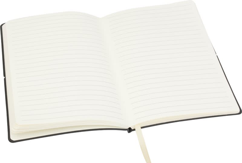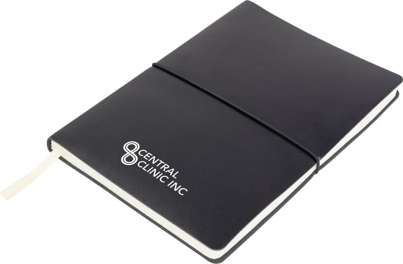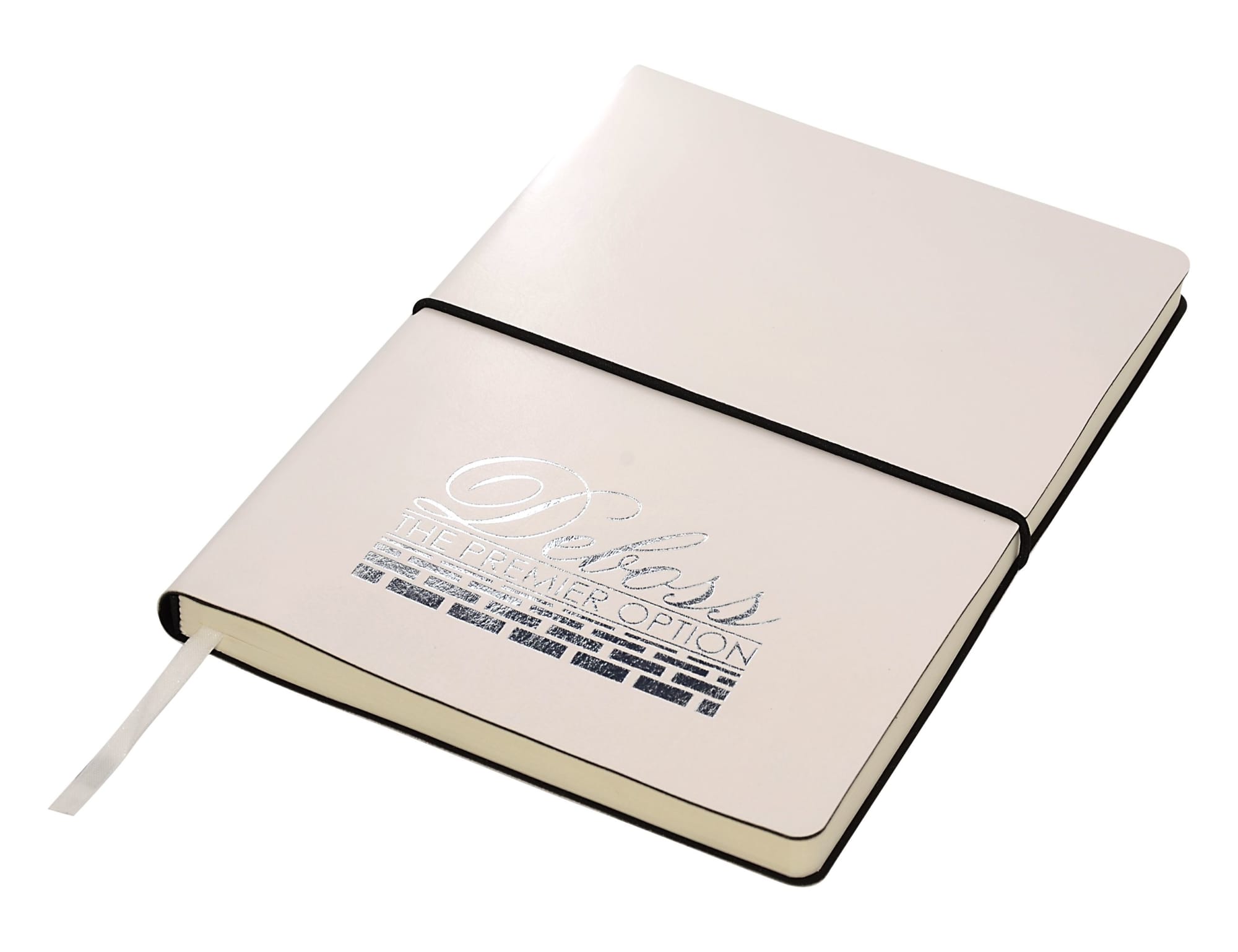 This quality A5 notepad features a soft leather-feel cover, elastic closure, ribbon marker and cream coloured lined pages. Available in black, navy and white, all with black elastic. If you’re after a debossed notebook, check these out!
