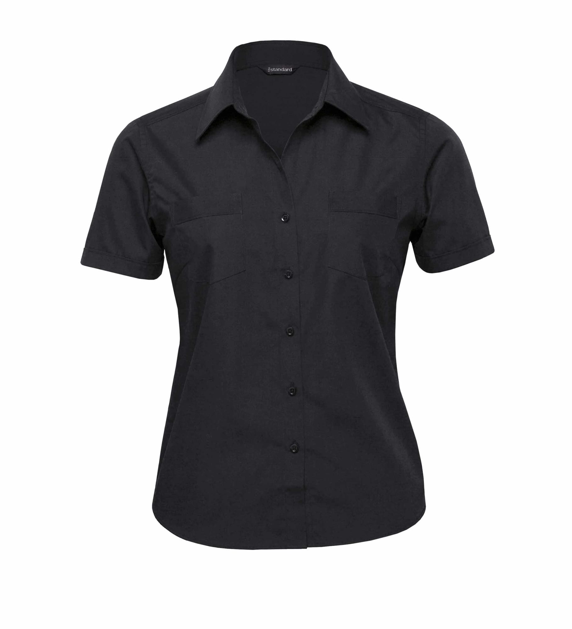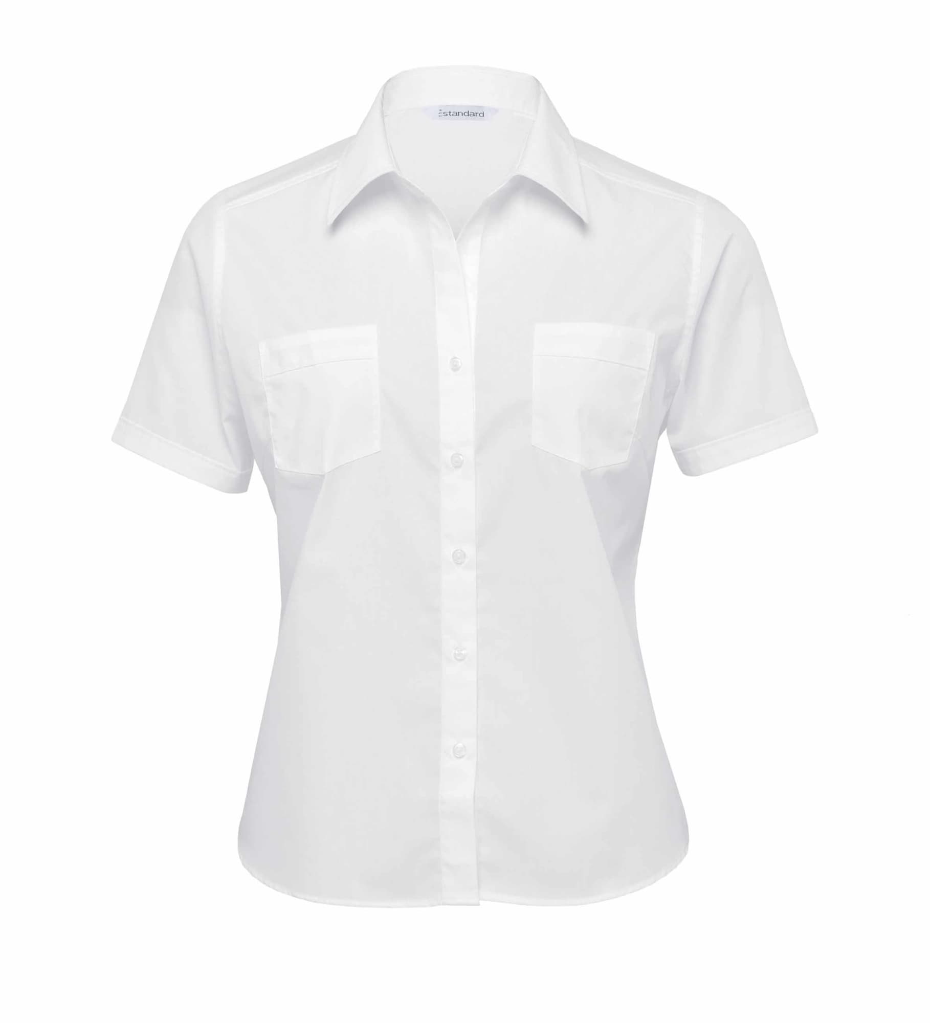 65% polyester 35% cotton poplin treated with DuPont Teflon|Classic fit|Fashion collar|Shaped body detailing front and back|Two breast pockets|Short sleeves|Contoured hemline