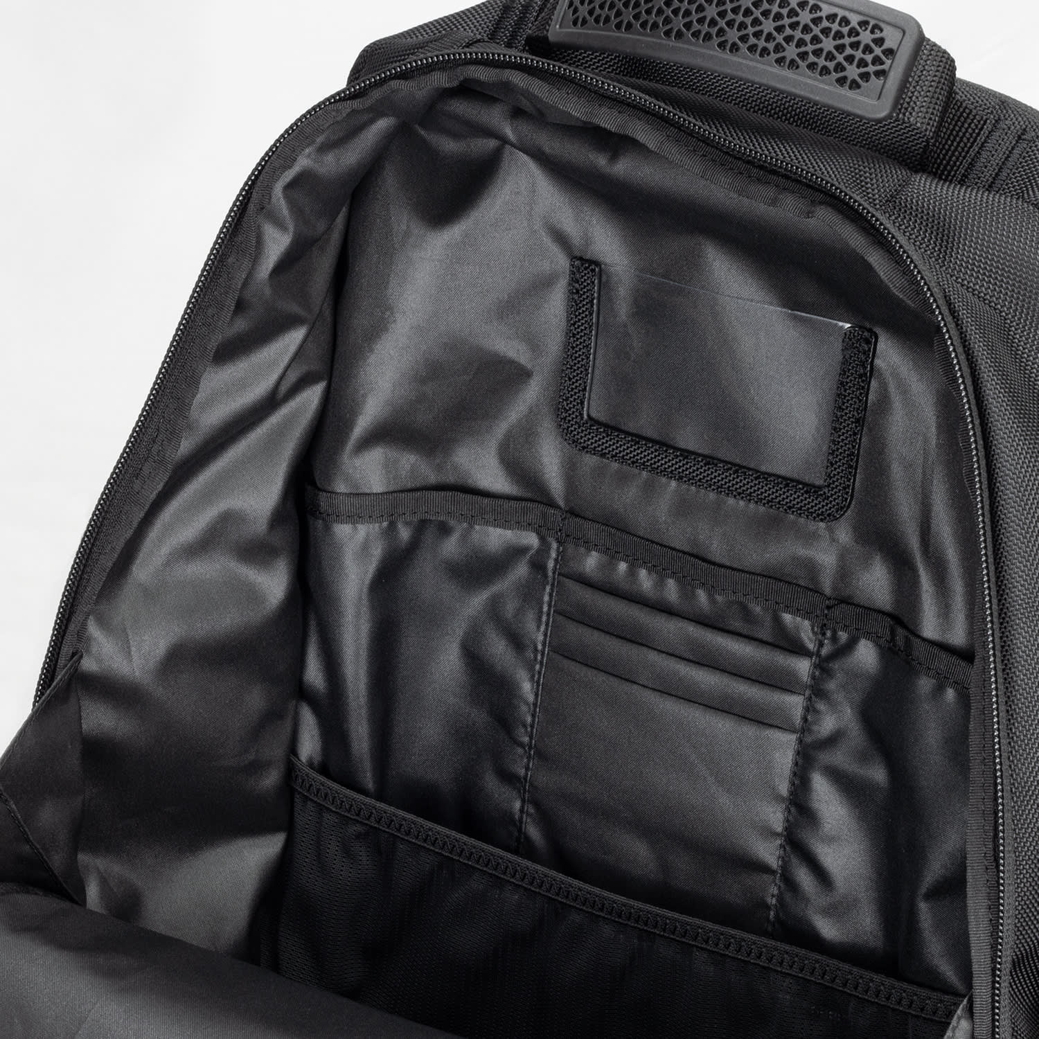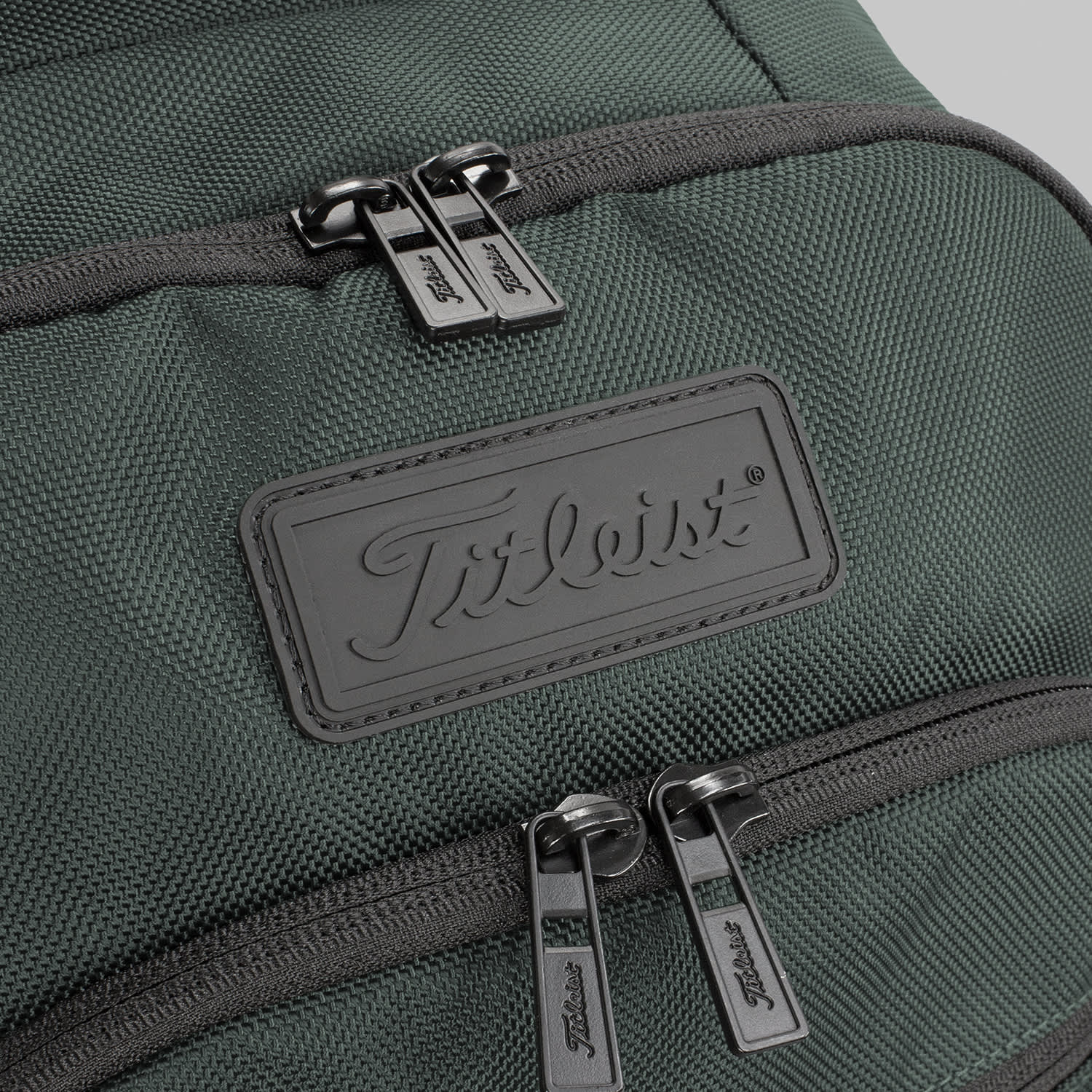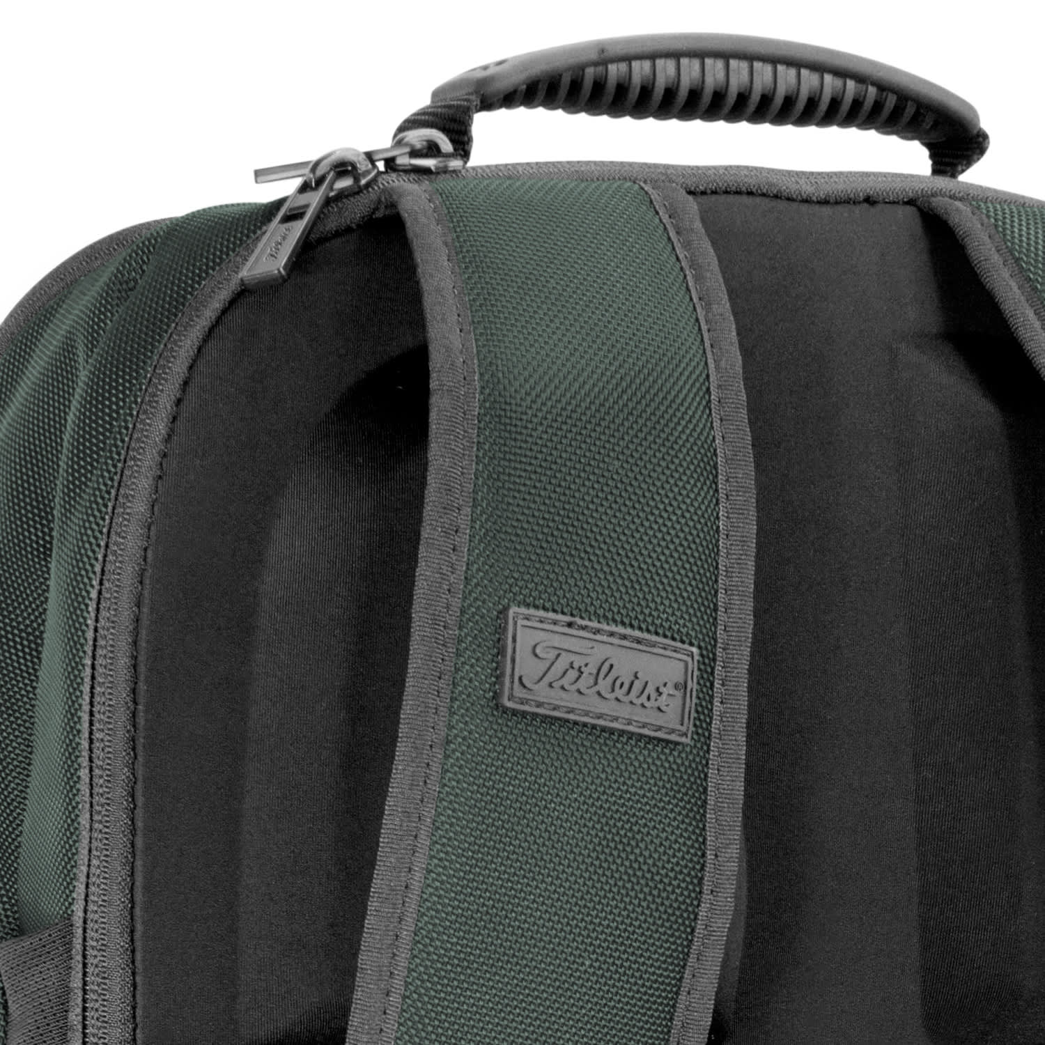 The Titleist Players Backpack combines superior quality with functional style and lives up to the brand’s reputation as golf’s symbol of excellence. The adjustable and breathable shoulder straps, ample foam lumbar support and spacious main compartments make it ideal for golfers or day trippers. Manufactured from durable 600D polyester it features three zippered compartments with generous internal organisation to securely stow a 15-inch laptop, books, wallets, pens and more. The smaller front compartment has a discrete internal zippered valuables pocket, a Velcro pocket, and a carabiner clip. Other features include a front zippered pocket which can be co-branded, two large side drink bottle sleeves, a sturdy rubber carry handle and a luggage strap so it can slide onto a rolling suitcase handle. The Titleist logo is subtly branded at the top of the main compartment and on the right shoulder strap. Please note this product cannot be supplied without the Titleist logo.