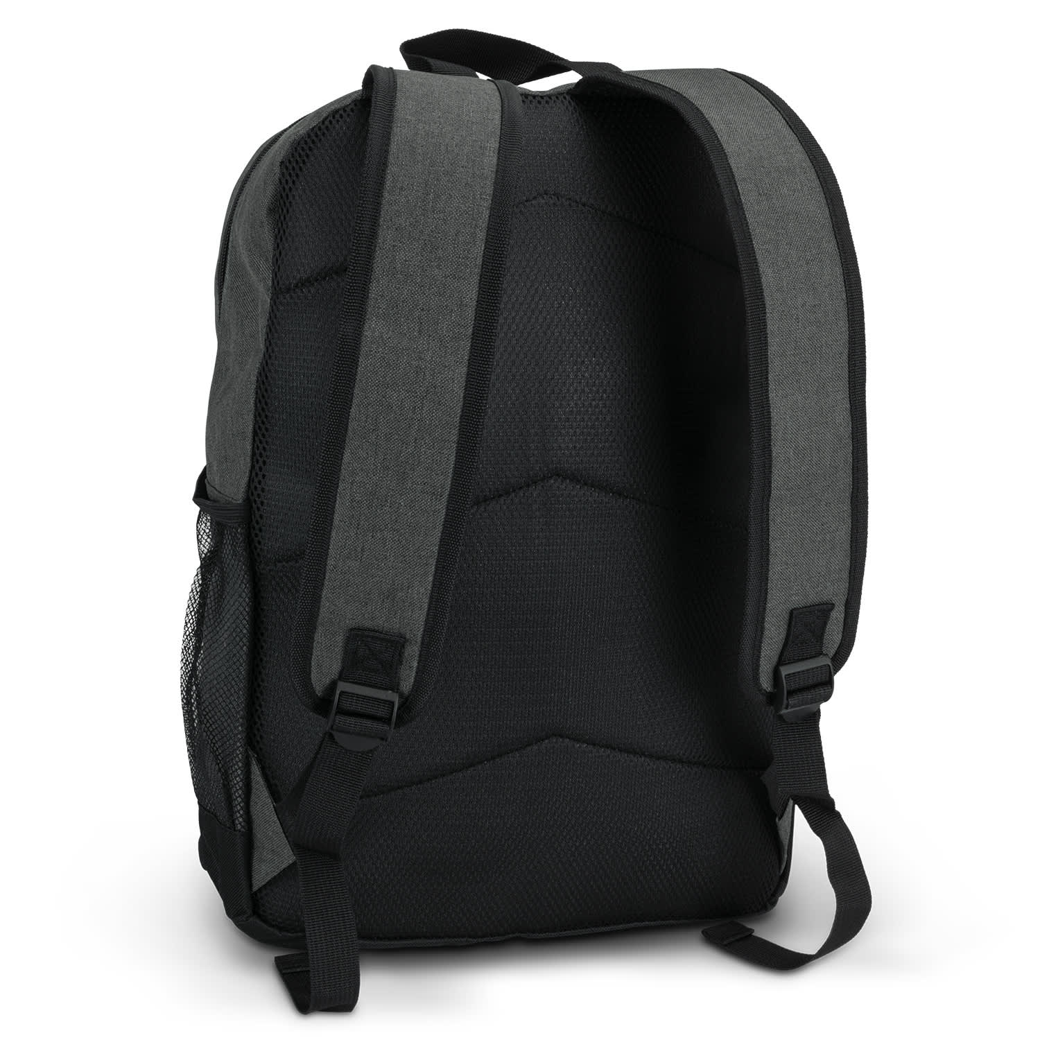 Fashionable backpack which is manufactured from poly-canvas with an on-trend heather-style finish. It has padded woven straps that are adjustable, a soft padded back and a padded internal laptop compartment. Other features include a large zippered pocket on the front, two mesh side pockets and a woven carry handle.