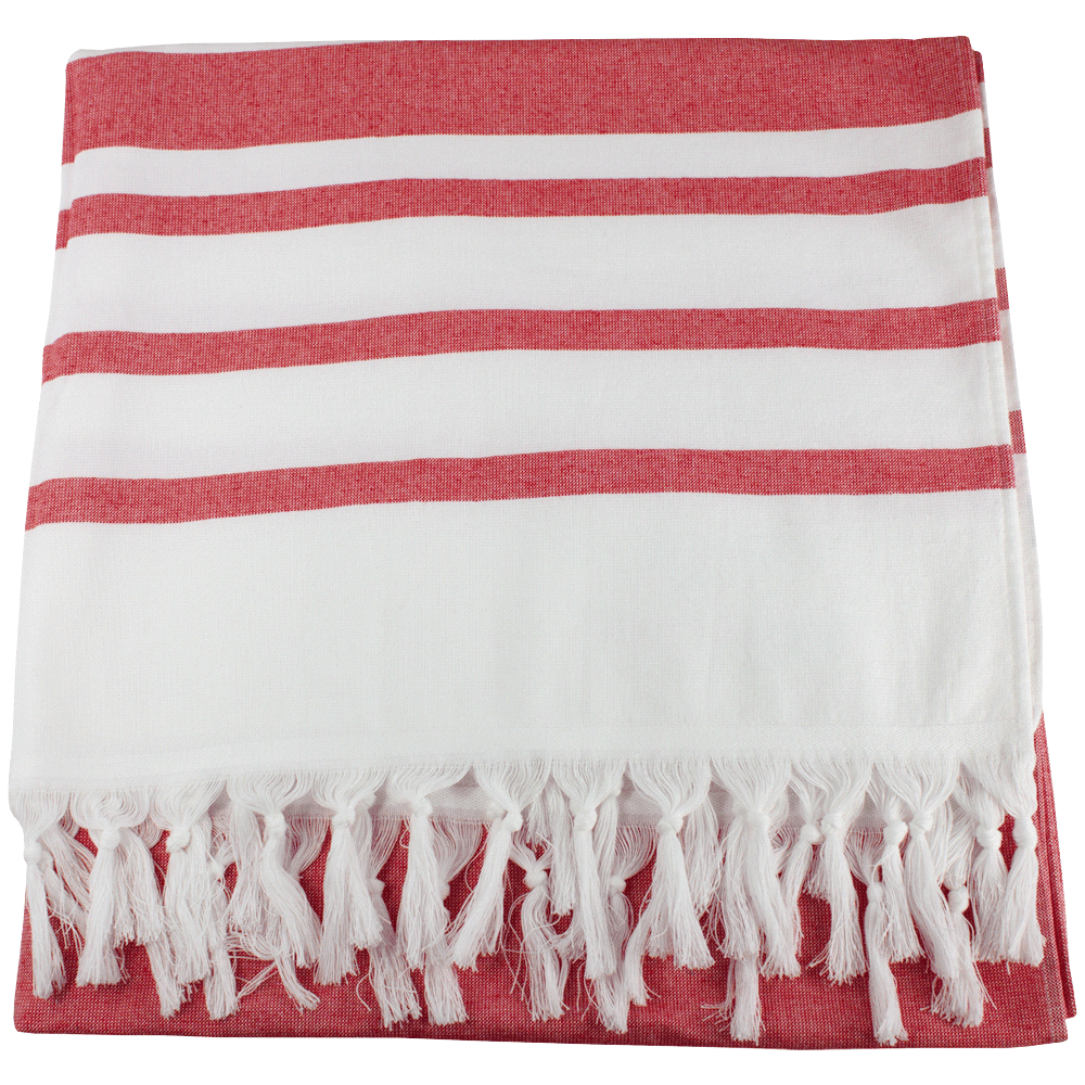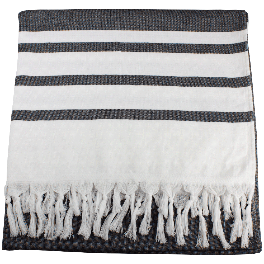 FeaturesFeaturing a stylish hand-knotted fringe, the premium pre-washed towels are luxurious, lightweight, very absorbent and quick drying. Use them in your bathroom, as a chic sarong on the beach, or as an impromptu picnic blanket. They are beautifully versatile, and perfect for traveling as they take up so little space. 100% cotton, 270GSM