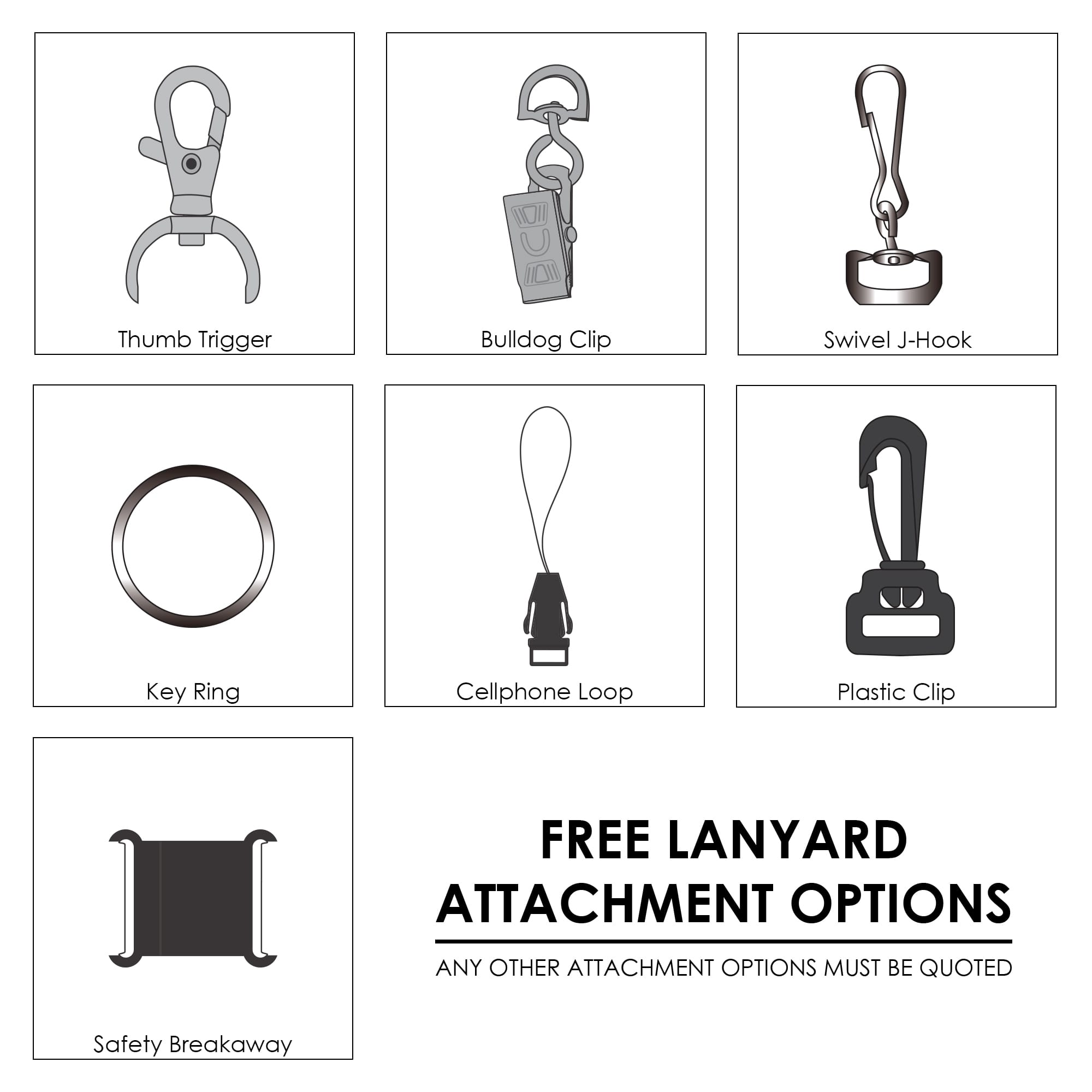 The tubular lanyards are made from loose stitched polyester formed into a tube and crimped in the end. It is soft and comfortable to wear. It is a perfect choice for those who are going for price and comfort. Your logo and text is applied to the custom tubular lanyard using the same silkscreen printing methods used on T-Shirts. To create your own your lanyard select a colour select a free attachment add on optional safety breakaway unit and add your logo.