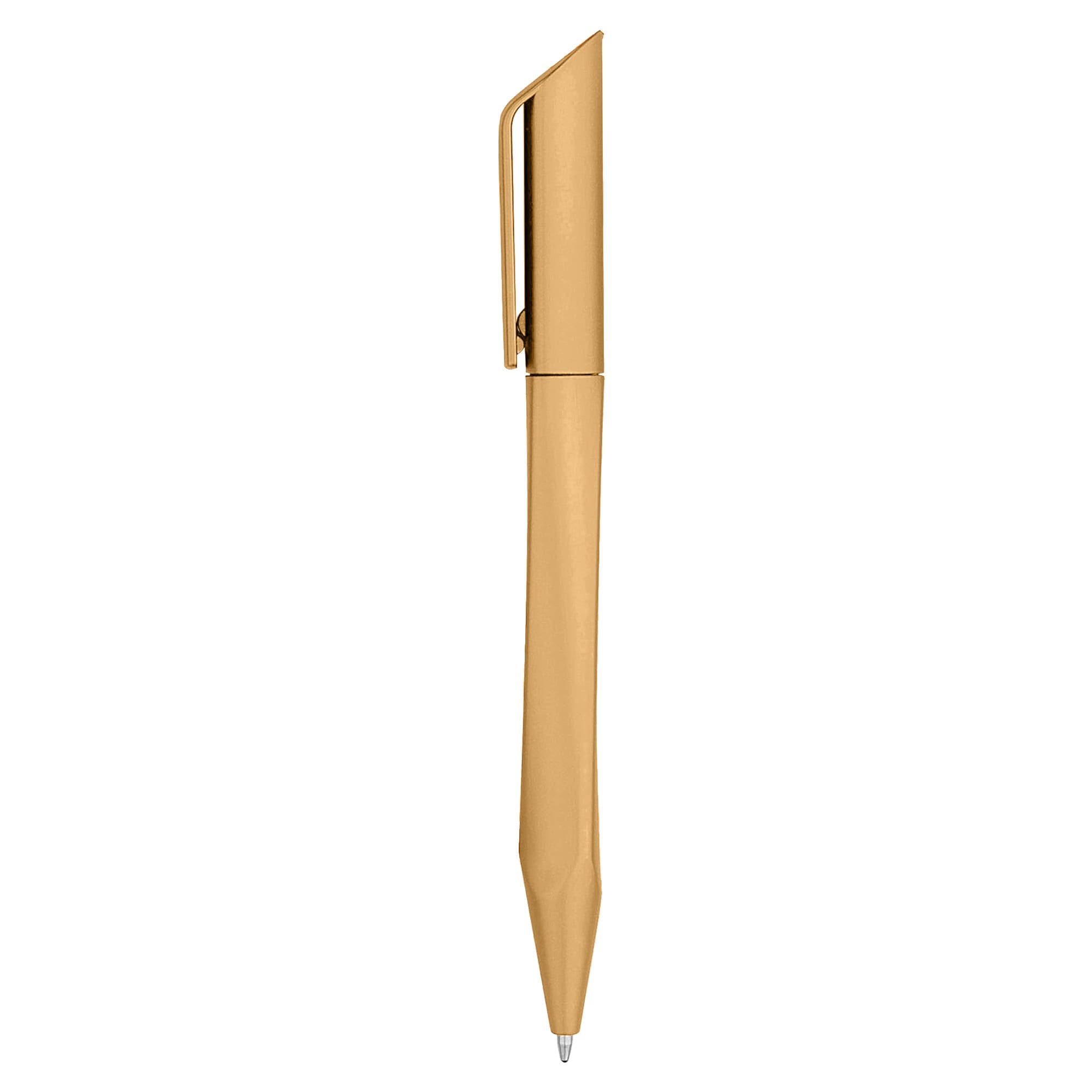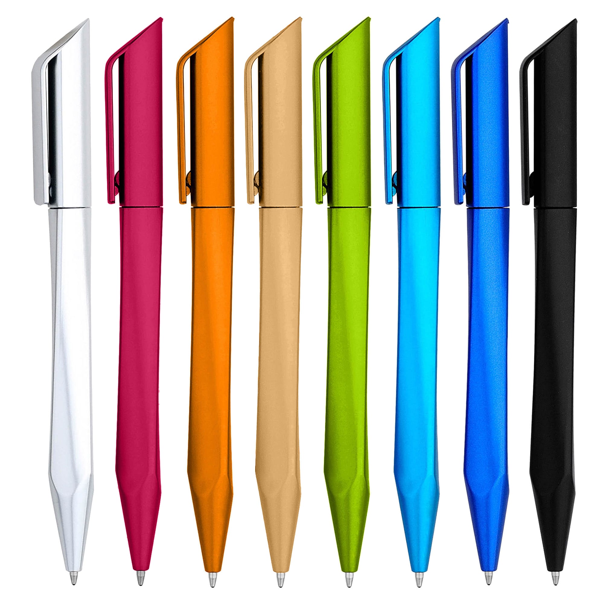 Eye catching stylish twisted shape solid metallic plastic pen. Twist action with high quality German manufactured black ink refill 1800 meters writing distance tungsten carbide ball which brings you a better writing quality. An ideal promotional pen for your next event.