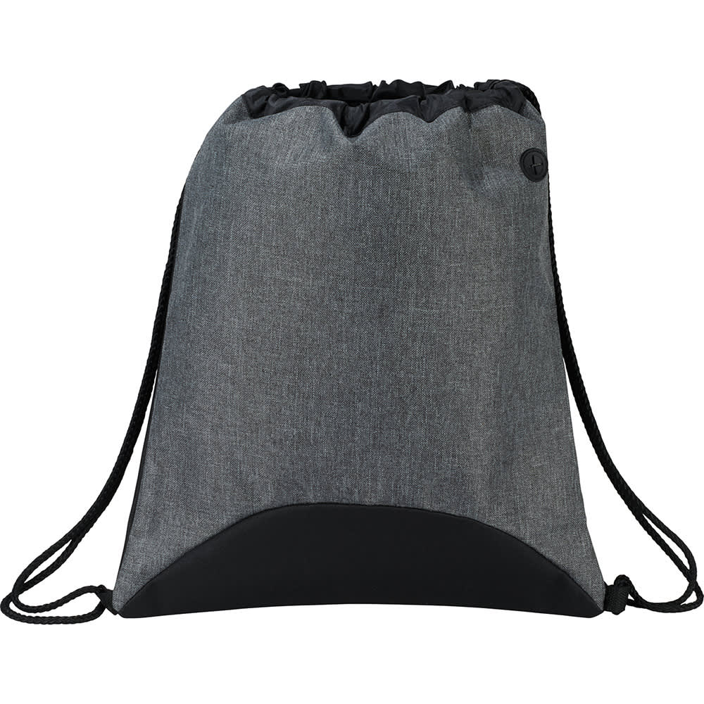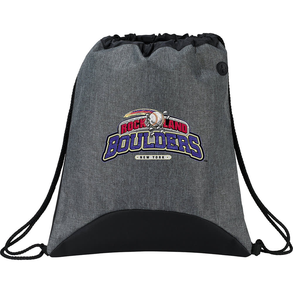 Open main compartment with cinch closure. Features a media ear bud port and thick deluxe string straps.
