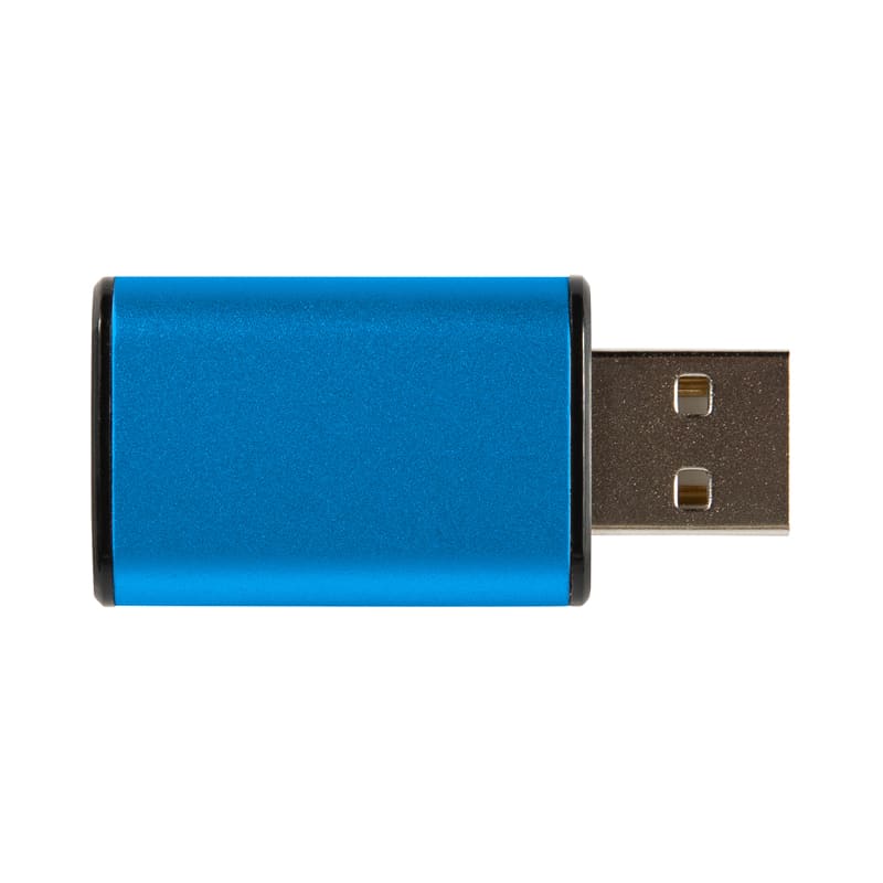 The USB Data Blocker 2.0 protects your smartphone or tablets from any unwanted data transfer, and without the risk of hacking or the uploading of viruses while charging. Simply plug the data blocker into any USB charge port before plugging your charge cable in between the data blocker and your device to start charging. Includes standard backing card with instructions or custom-designed cards. Material: Aluminium.