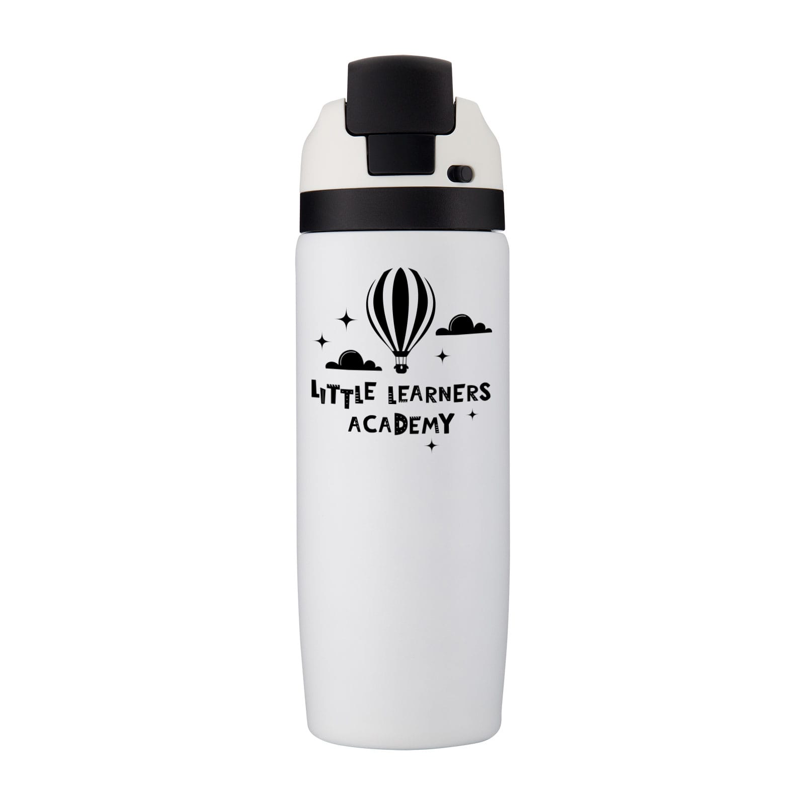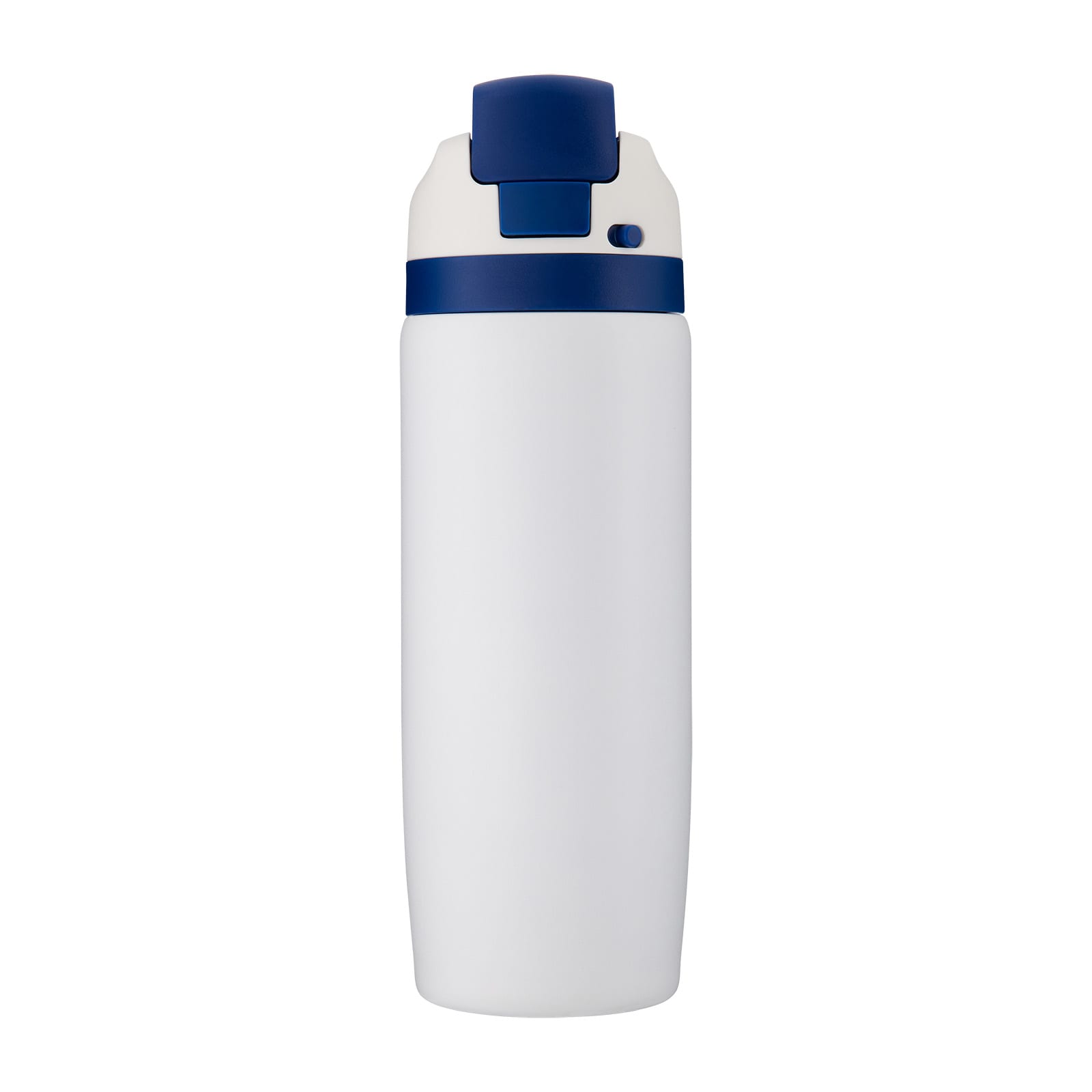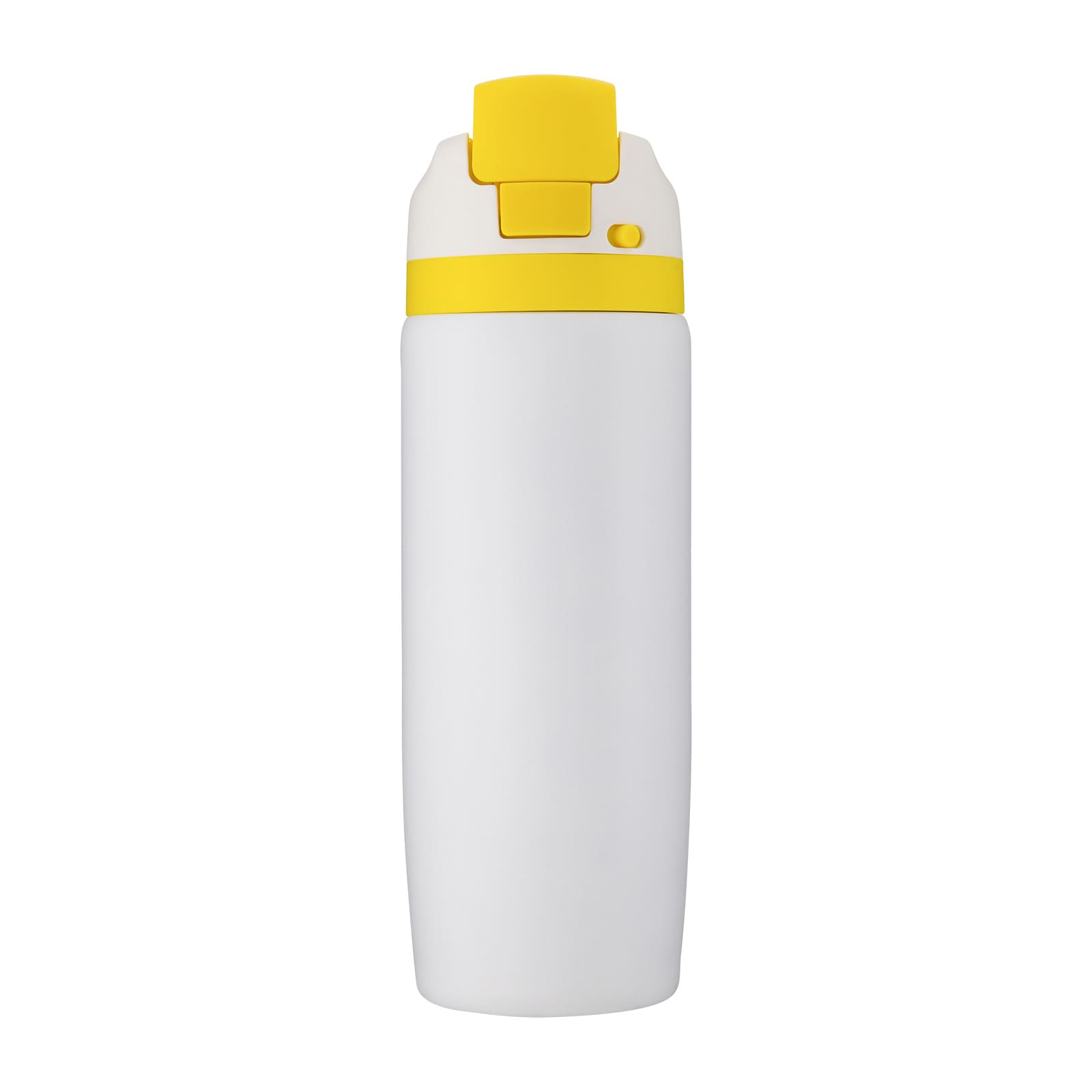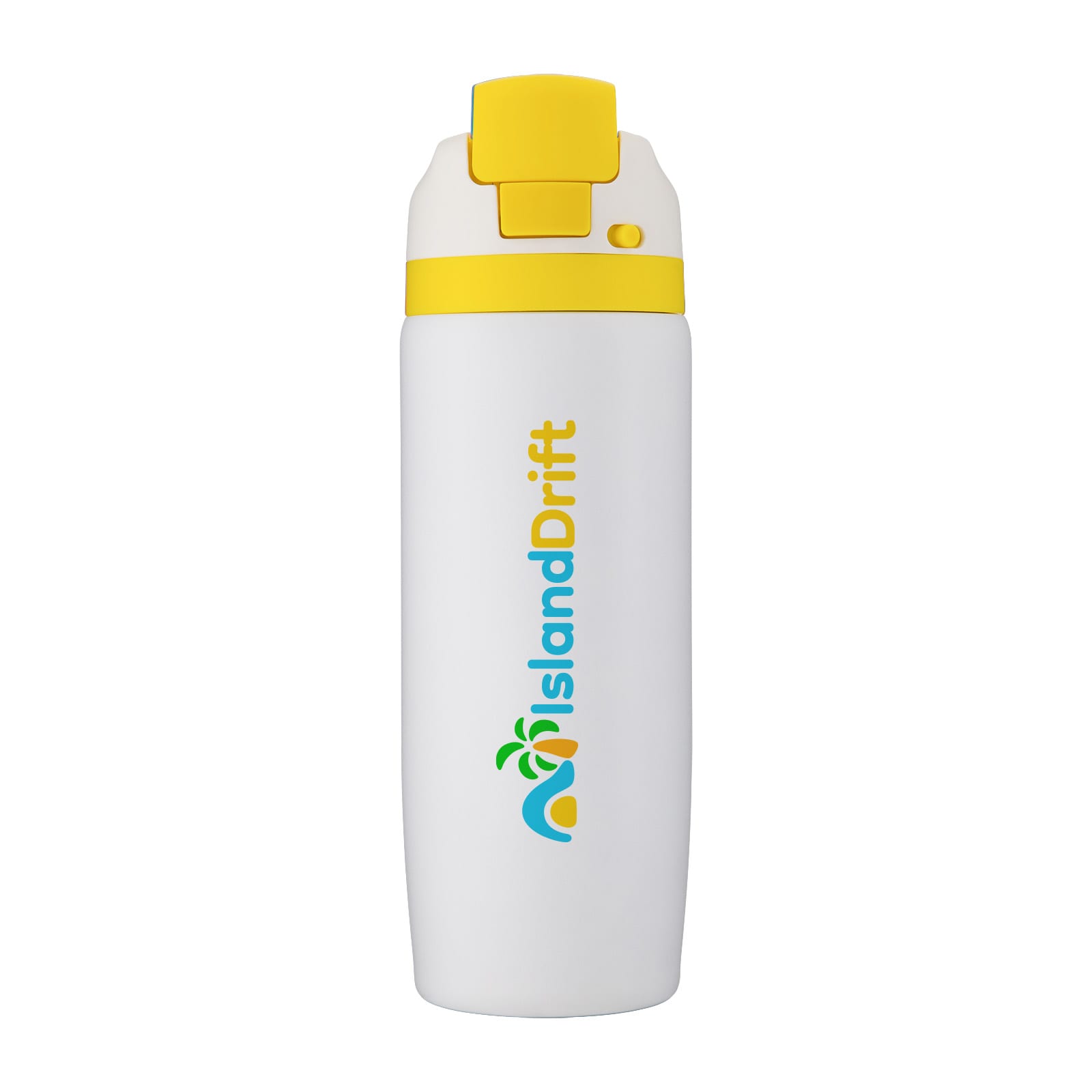 Stay refreshed with the Vibe Drink Bottle – a 750ml powder-coated vacuum bottle designed to keep drinks hot or cold for longer. Its clever combination pour-and-straw lid gives you two ways to drink: sip upright through the straw or tilt back to pour. Just push the button to flip the lid open and press down to lock it shut, keeping the mouthpiece clean and protected from germs. A built-in carry handle makes it easy to take anywhere. Finished in crisp white, the Vibe Drink Bottle is available with a choice of 9 lid colours, all enhanced by its durable powder-coated finish – a versatile and stylish option for promotions, gifting, or everyday hydration.