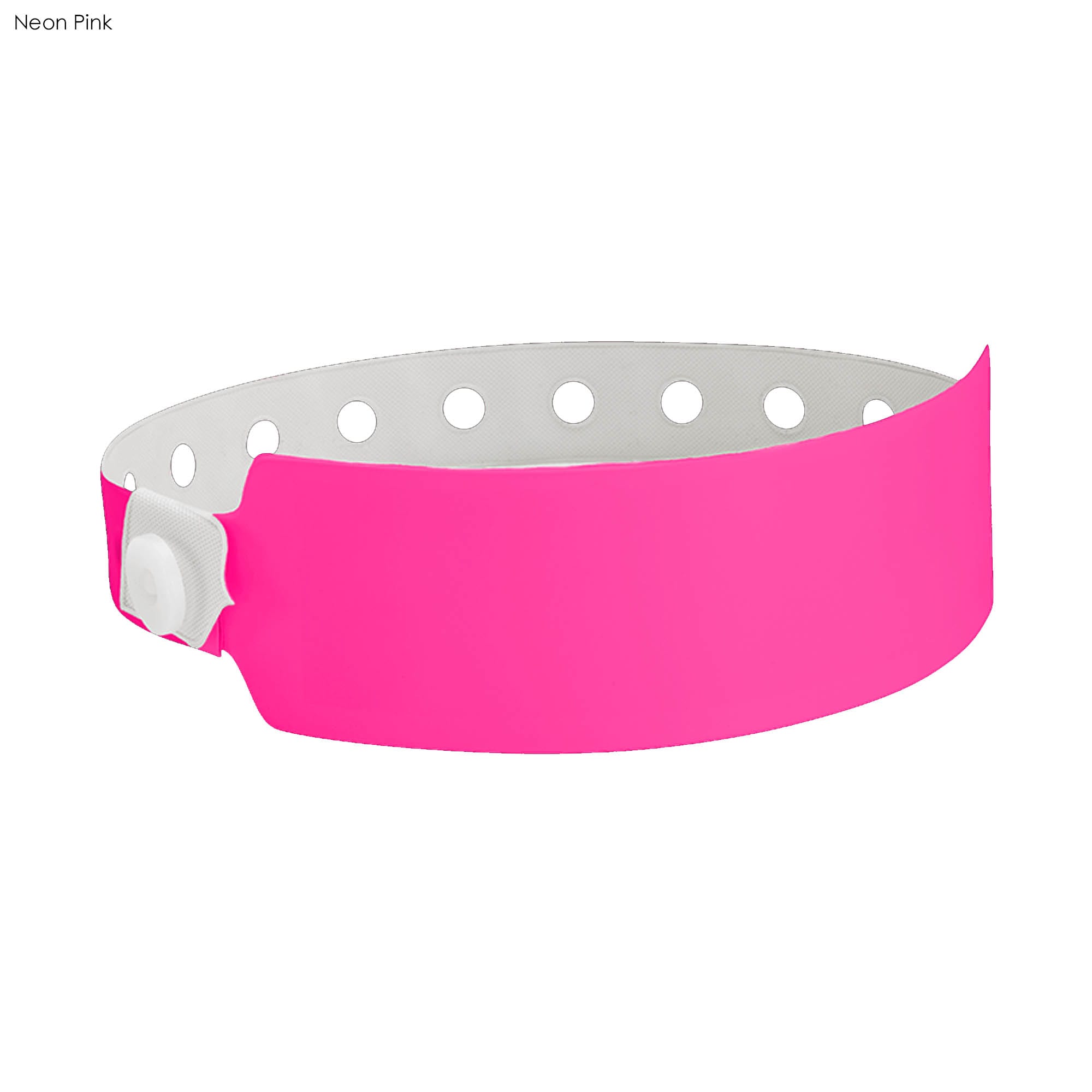 This 25mm wrist band is made of 3 layers of PVC vinyl and one of most popular ID wrist band it features tamperproof snap closure and stretch resistant vinyl wristbands are waterproof and can be worn for very long periods of time. The backside of the vinyl wristband is white not the colour or design on the front. It is designed for multi-days events and activities also a great ID band for hospital usage. 21 standard colours are available.