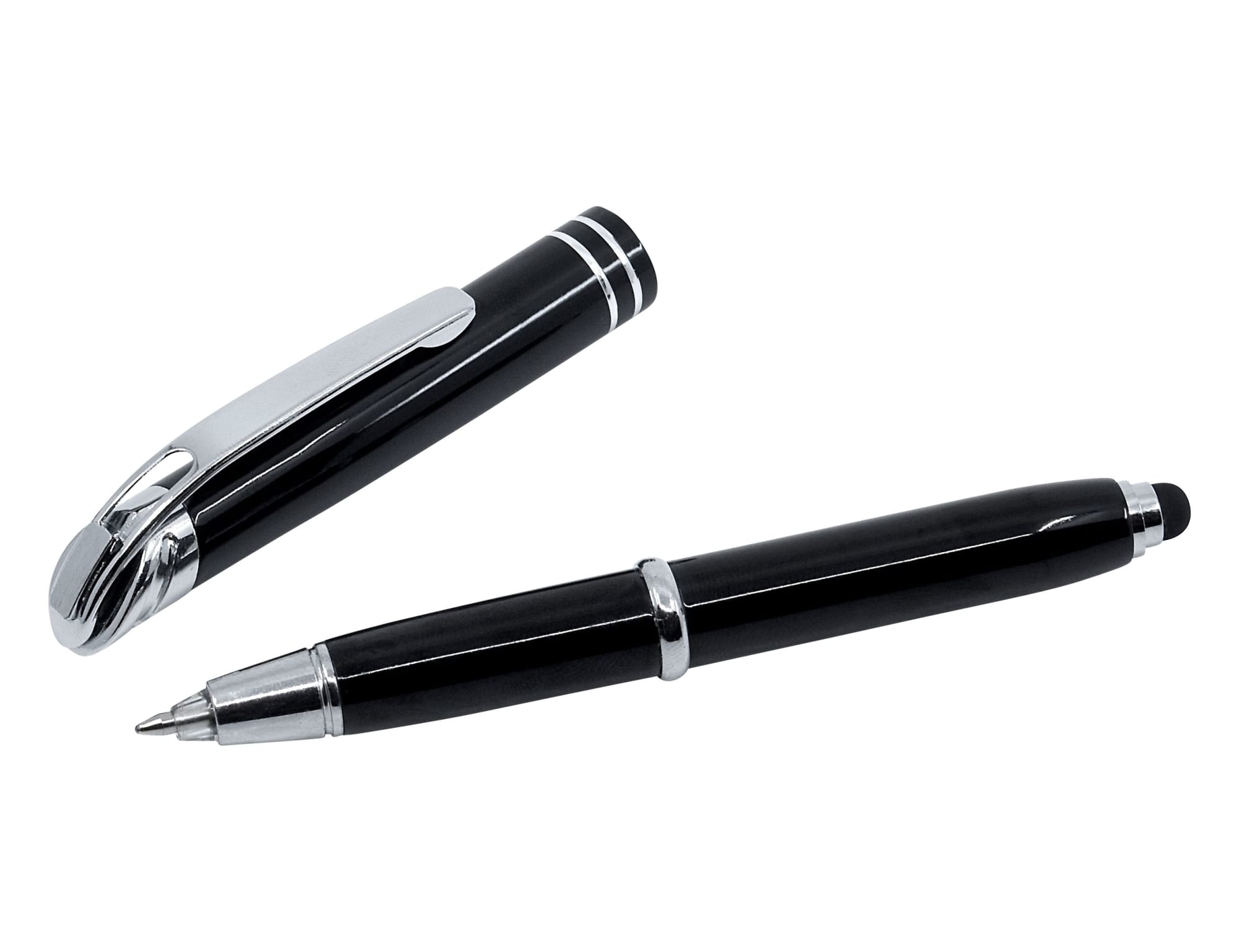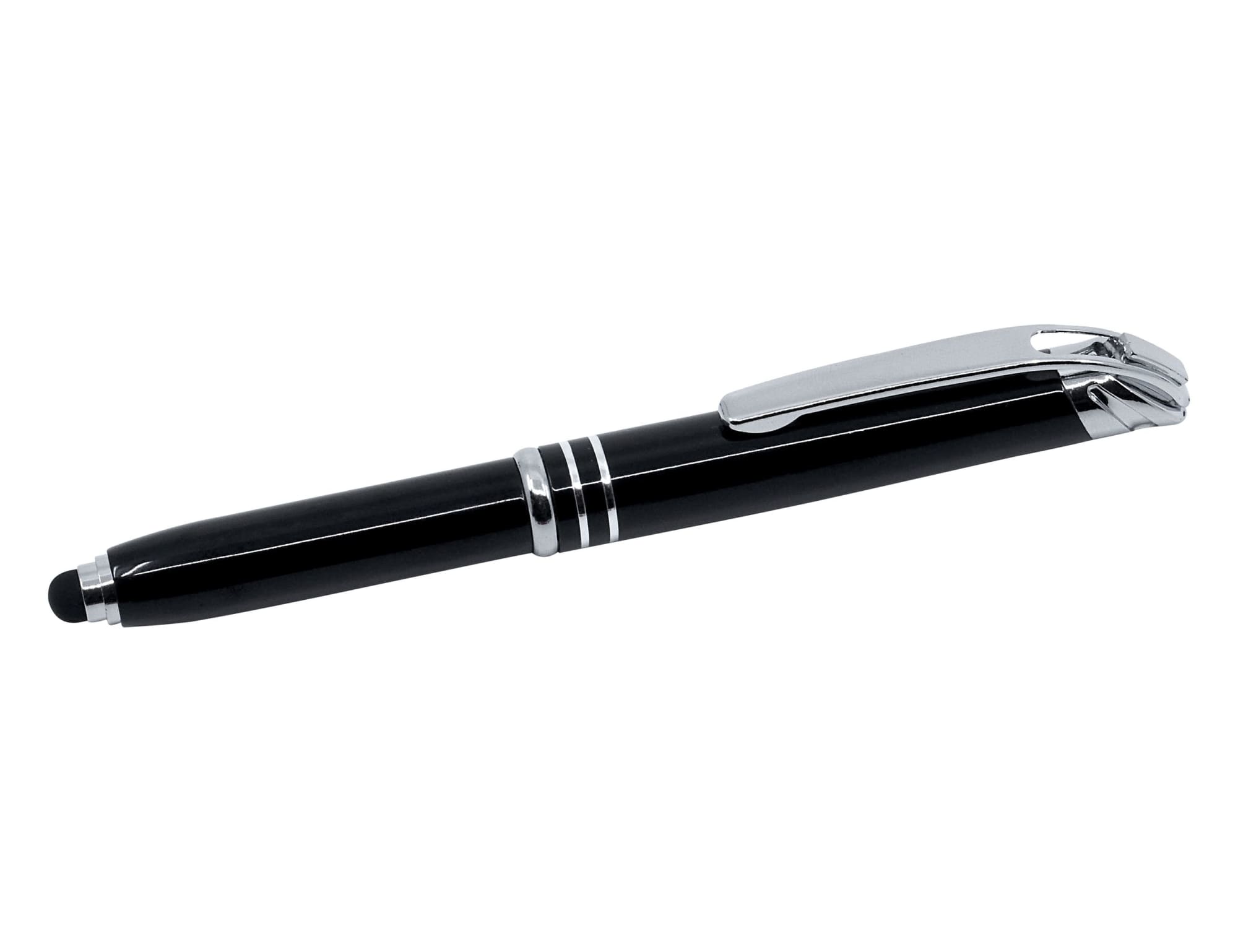 This innovative 3-way aluminium pen features a useful stylus and super-bright LED torch. The torch magically turns on as soon as the lid is attached to the back of the pen, making it the ideal pen for writing in the dark, as the torch lights up the writing area.