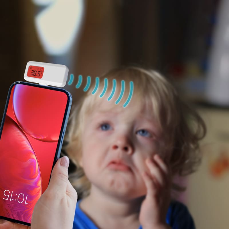 | Specifications | Input Voltage: 5V DC, Input Interface: Type-C, Lightning, Micro USB. Measurement Range: 30oC-42oC, Measurement Accuracy: +/-0.2oC, Measurement Time: 1 Second, Measurement Distance: 1-8 cm, Environmental Conditions: 10oC-35oC, Switchable Measurement Unit: oC/ oF. No Battery Required. |