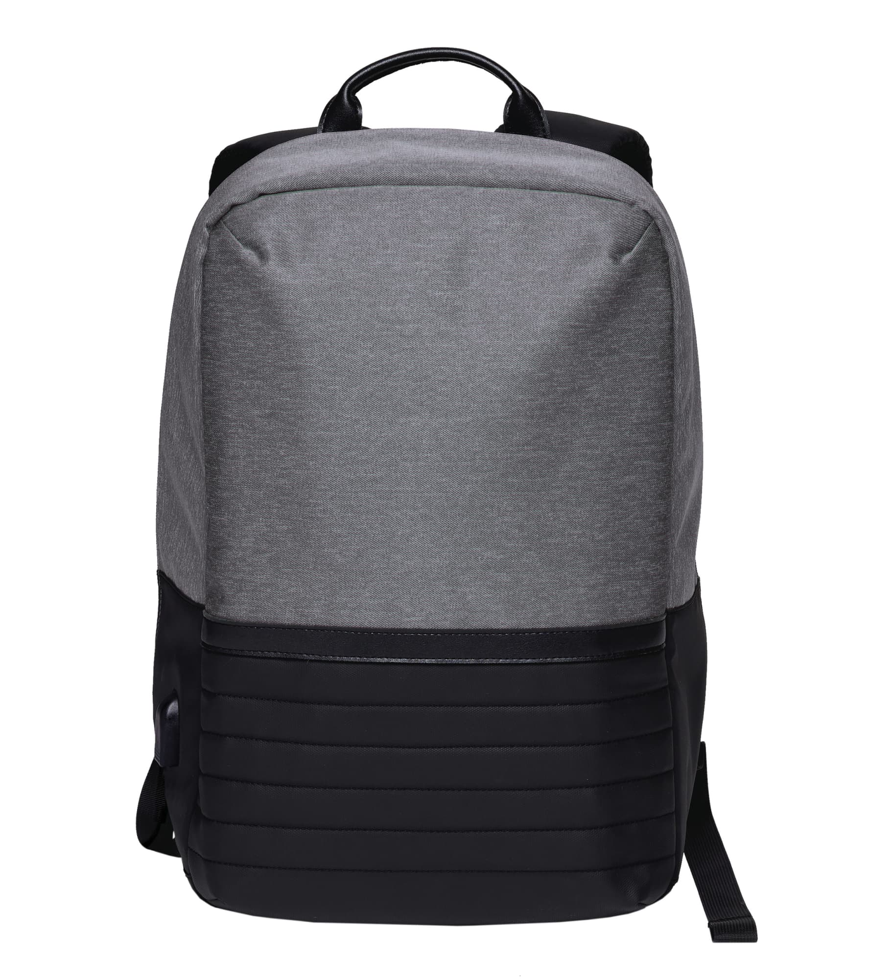 Melange polyester and water resistant 900D coated polyester|External USB charger port with integrated internal cable to charge your device|Main zippered fully cell foam padded universal storage compartment including dual 15.6” laptop and 10.1” tablet compartments with Velcro closure|Internal zippered pocket and multiple pocket organiser|Zippered passport/security pocket on lumber back panel|Mesh backed padded shoulder straps and contoured padded mesh back panels|Hands free mobile/media suction cup panel on shoulder strap|Back webbing panel can slip over wheeled bag handle|Capacity: 15 Litres