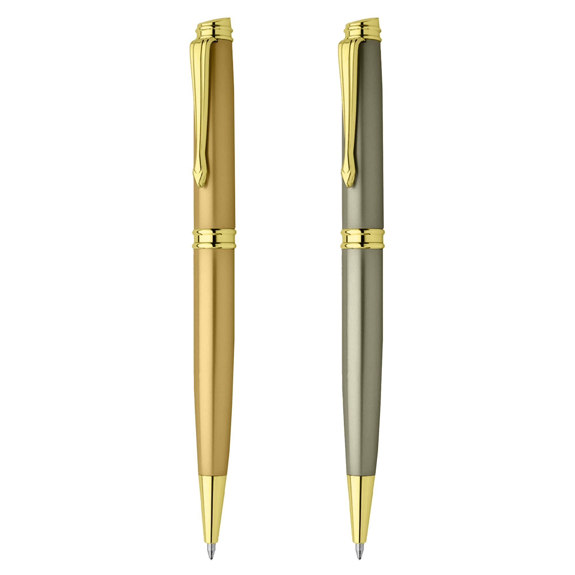 Distinctive design metal pen made of copper quality and heavy weight gold plated trim twist action with Inclined top and metal Parker-Type German manufactured black ink refill 1200 meters writing distance tungsten carbide ball provides you with quality writing.