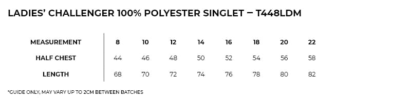 Be the first to review “Womens’ Challenger 100% polyester singlet” Cancel reply