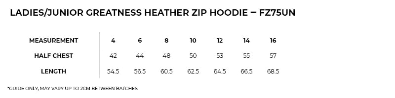 Be the first to review “Womens/Junior Greatness Heather Zip Hoodie” Cancel reply