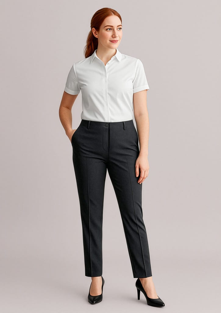 Features: Perfect for those after a slimline pant with the added comfort and movement of an elastic back waistband.