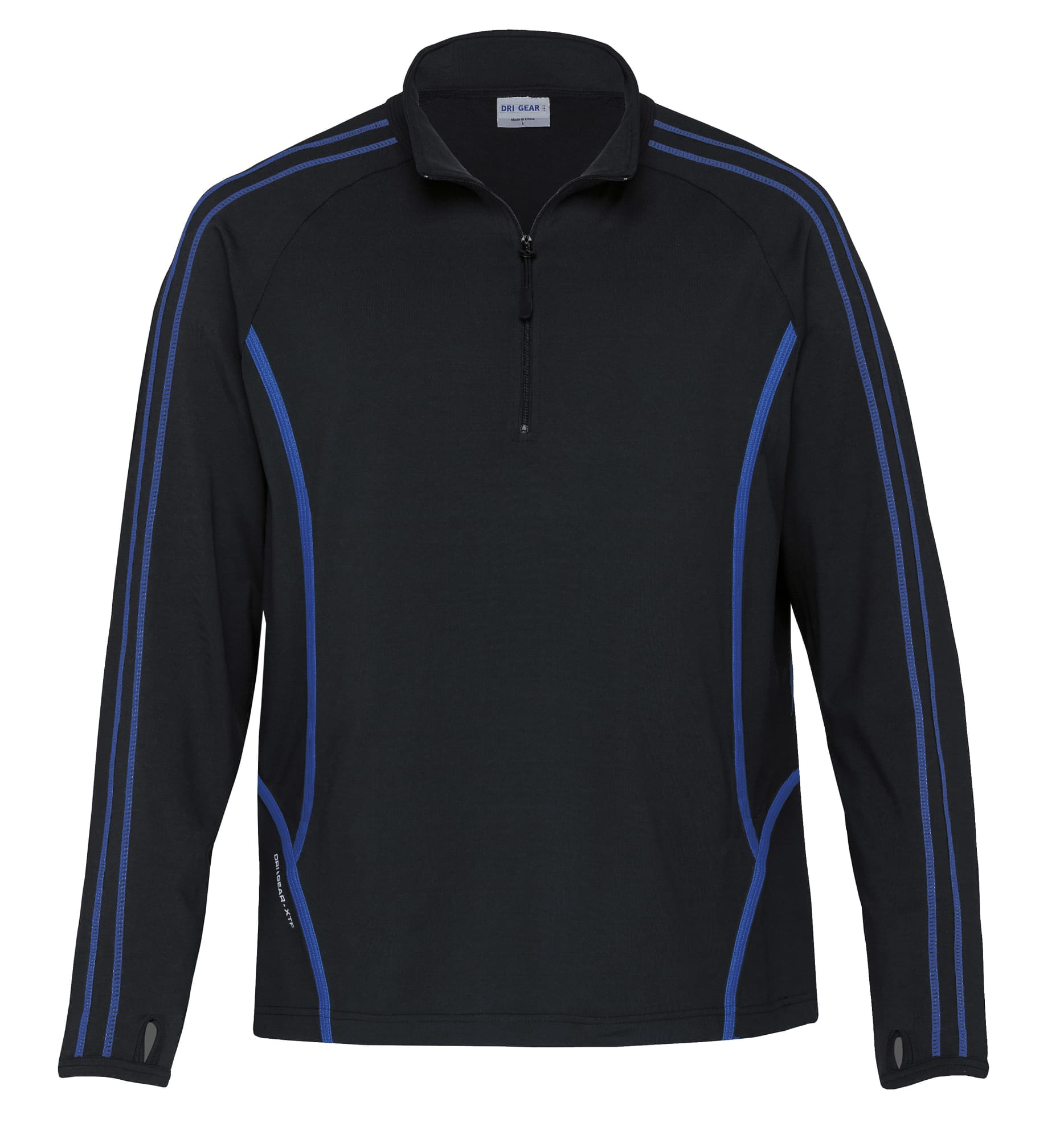 250gsm high tech stretch 92% polyester 8% elastane|Moisture wicking|UV protection|Tapered fit|Exposed high-zip with rubber puller|Contrast fabric detailing on body|Raglan sleeves|Contrast cover stitch detailing on shoulders and sleeves|DRI GEAR XTF (Xtreme Technical Fabric) reflective print