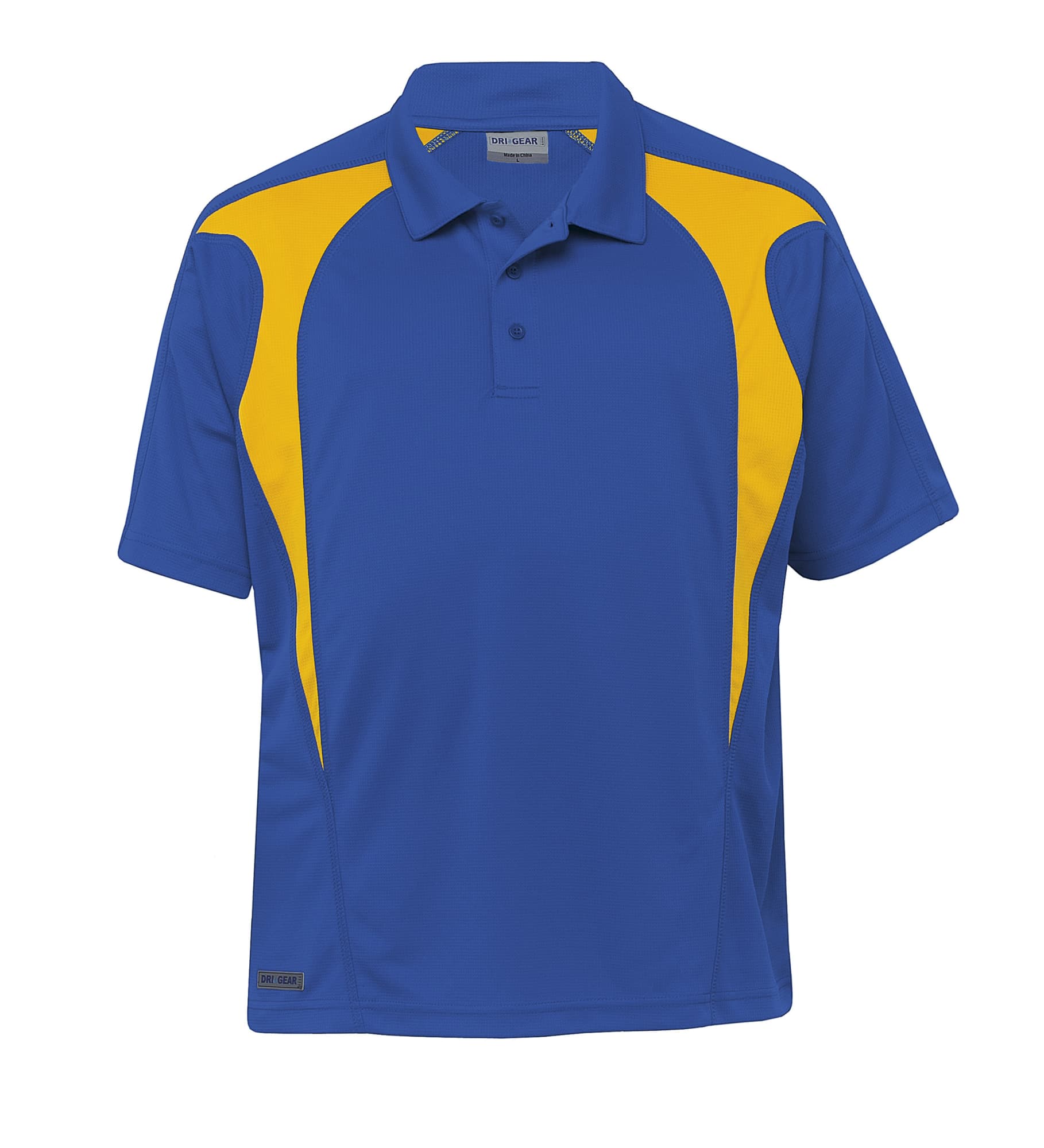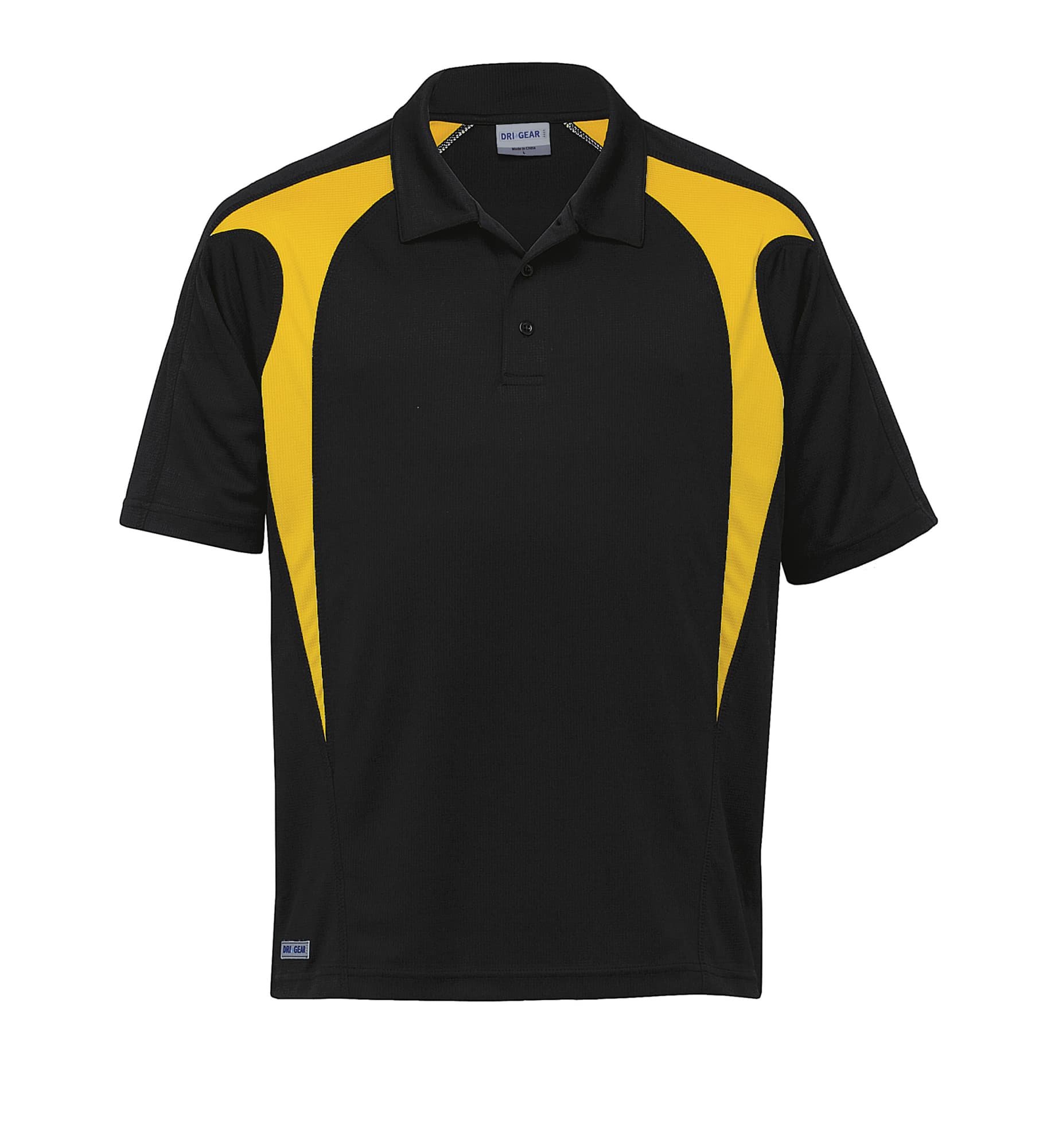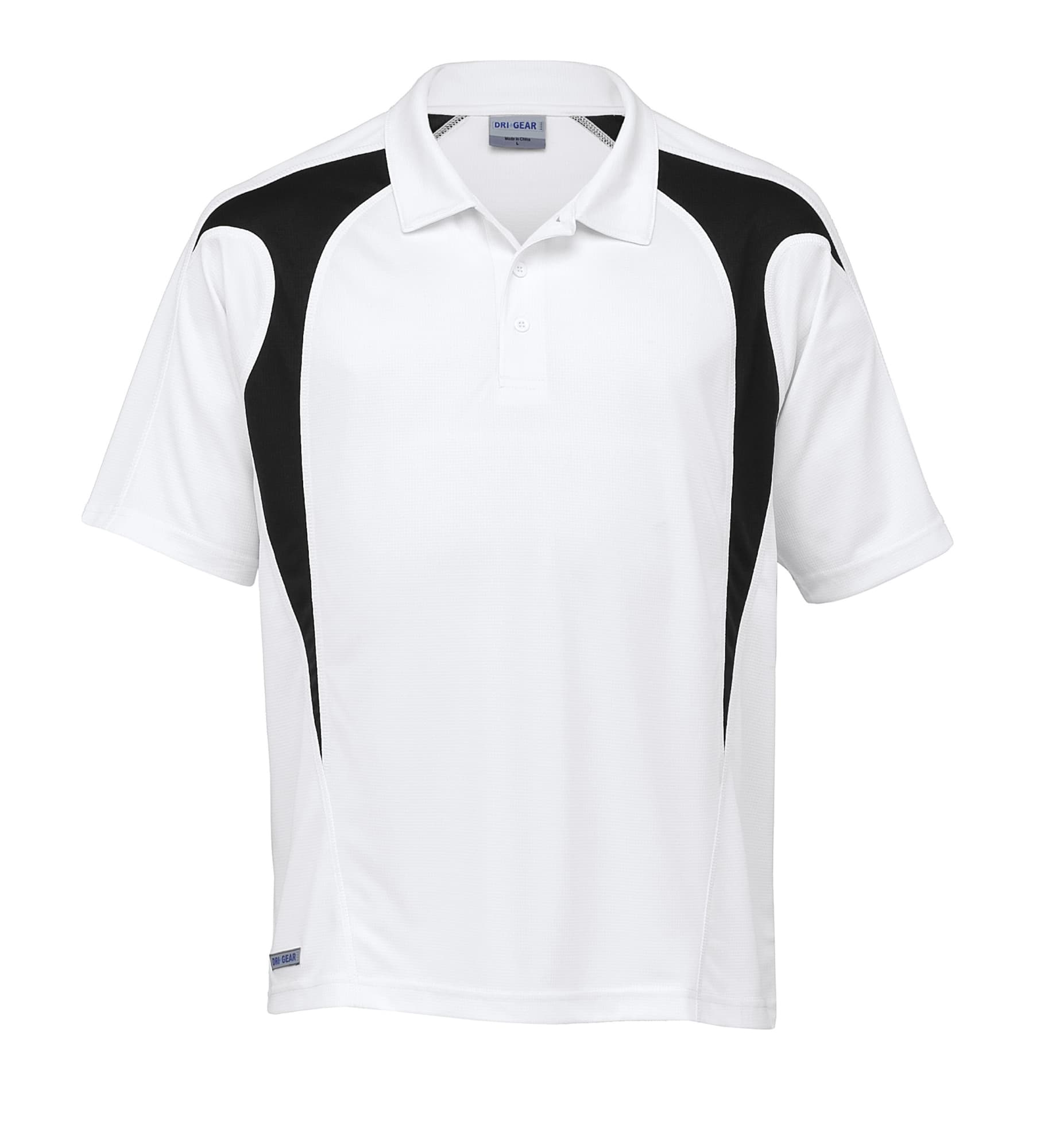 140gsm 100% micro poly square weave|Moisture wicking|UV protection|Classic fit|Contrast panels with cover stitch detailing|Raglan sleeve|Self fabric collar|Buttoned plaquet|DRI GEAR reflective badge on straight hem