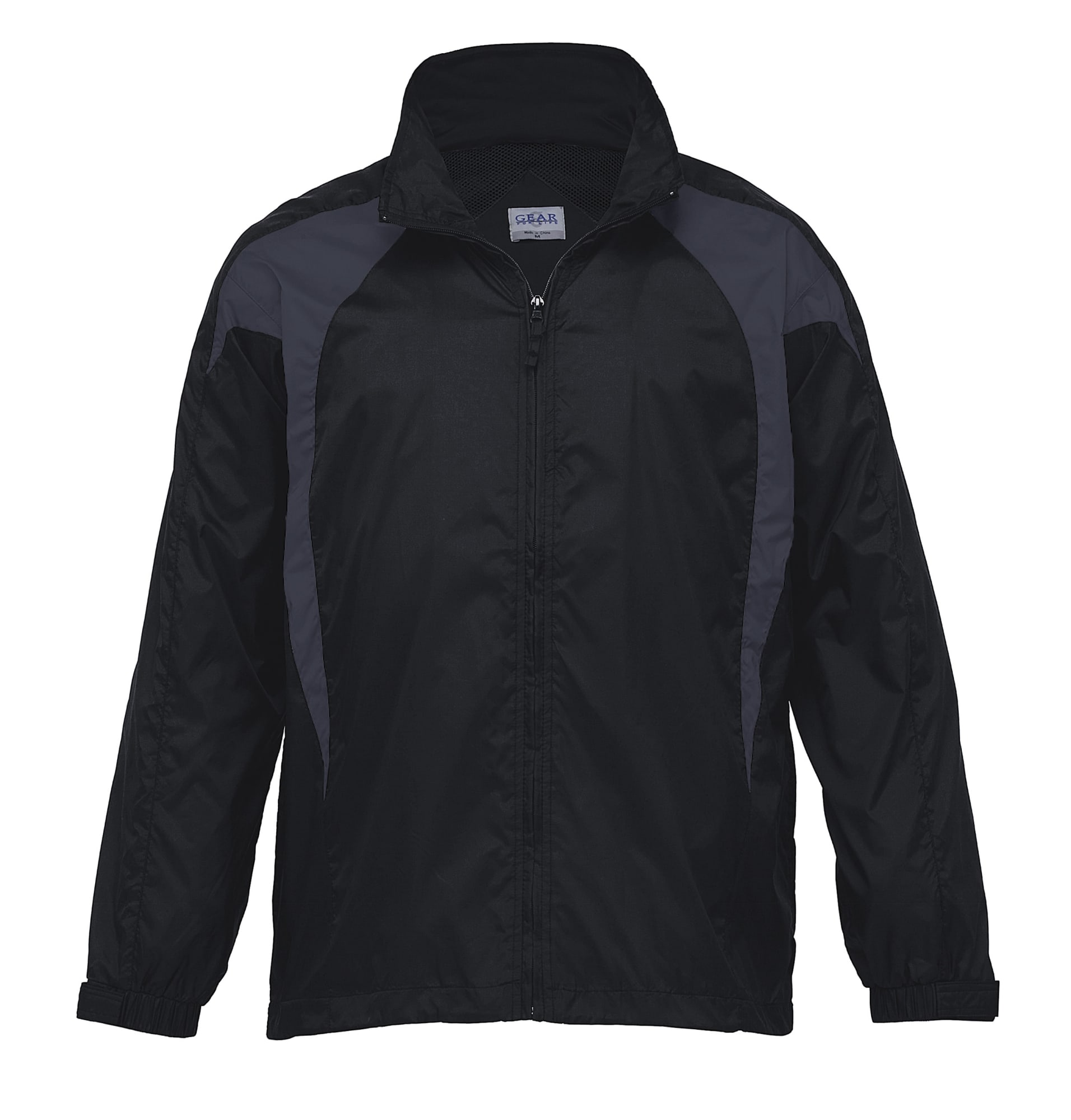 100% nylon taffeta|Showerproof|Classic fit|Fully lined with polymesh|Contrast front panels|Vented back panel|Hidden tuck away hood|Two side pockets|Adjustable elasticated cuffs|Elastic draw cord on hem|Edge stitched detailing|Zippered branding access